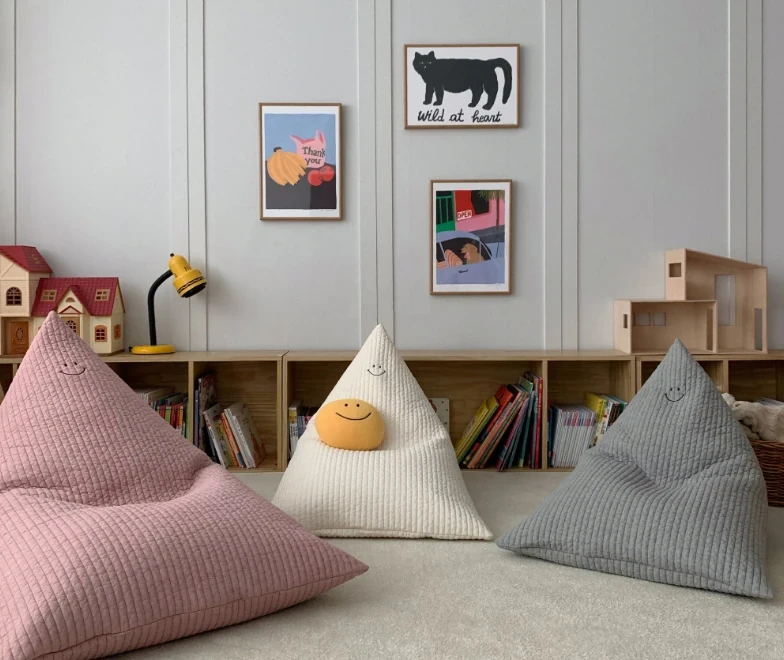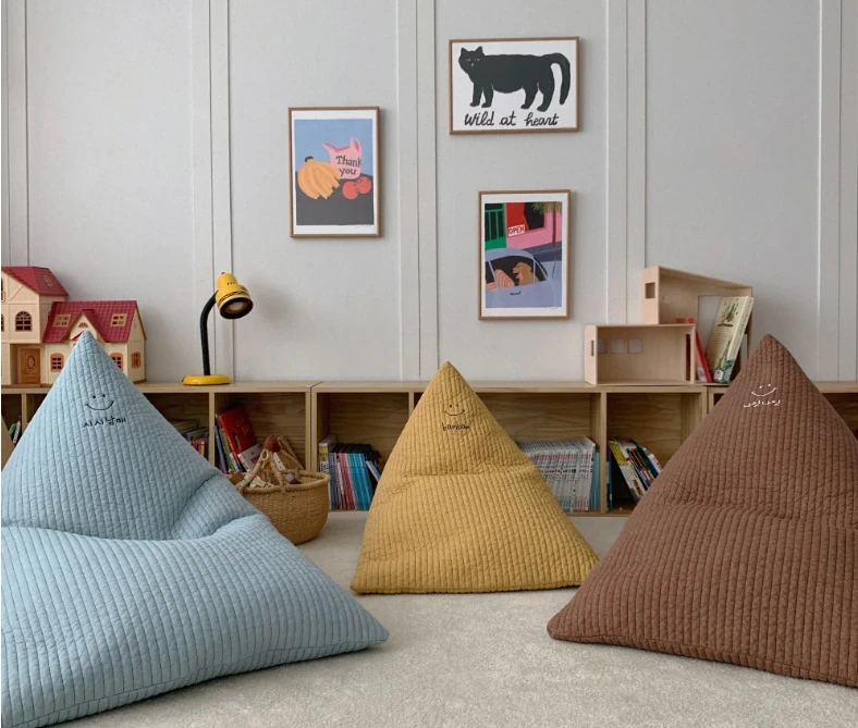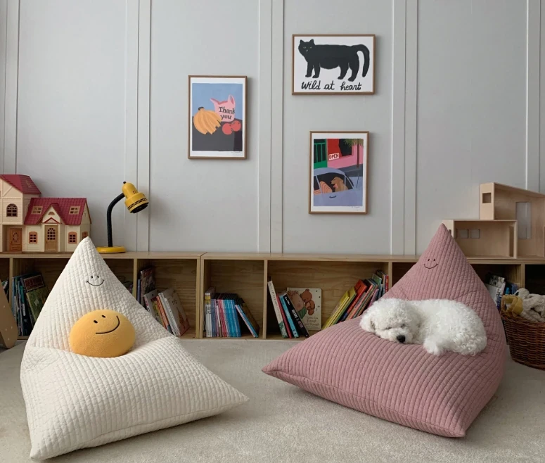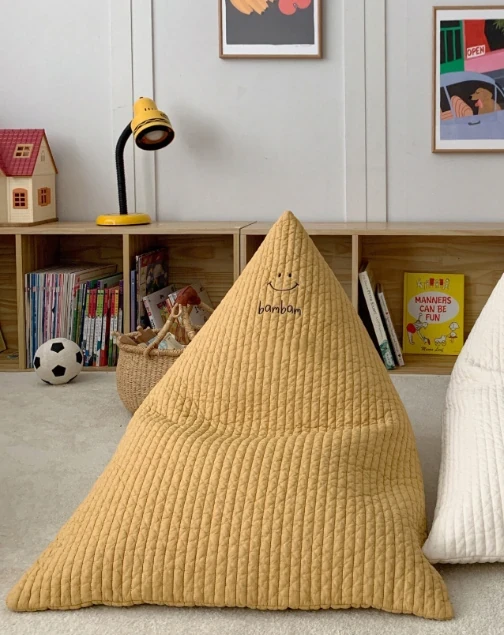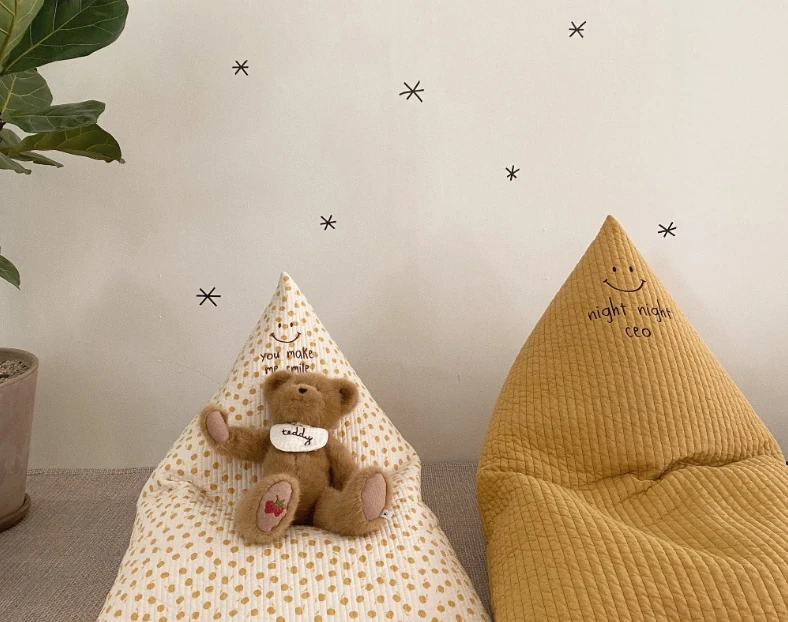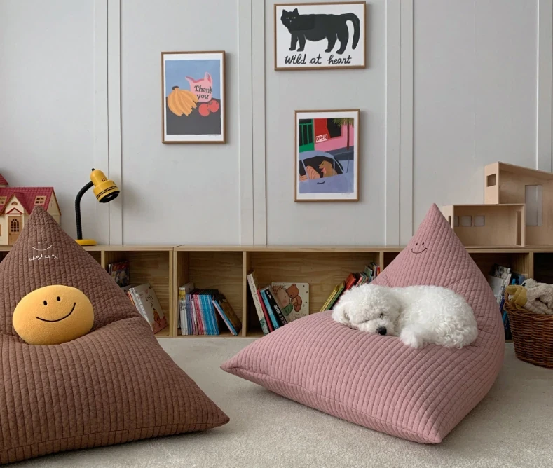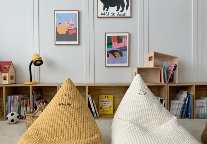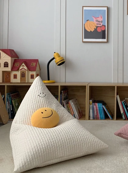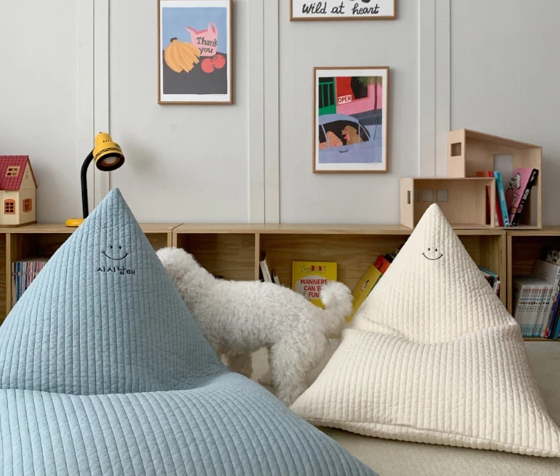 Korean-Style Parent-Child Smiley Face Premium Quilted Cotton Bean Bag Chair – Removable & Washable Lazy Sofa for Kids' Reading Corner – Trendy Ins Aesthetic