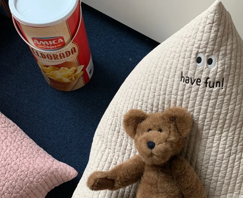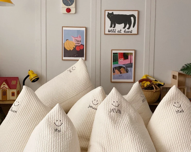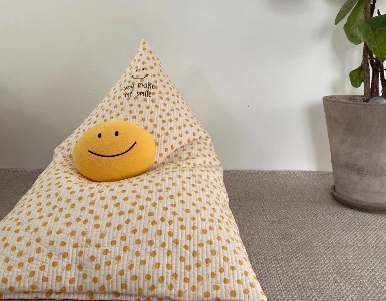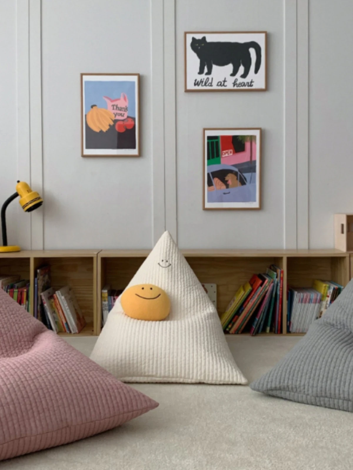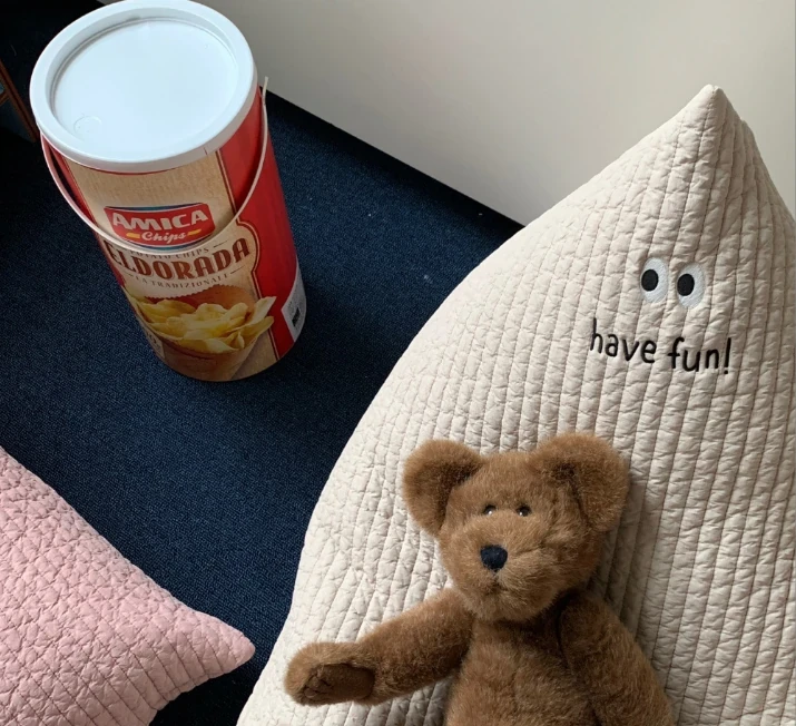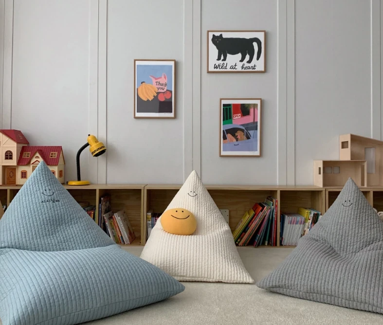Korean-Style Parent-Child Smiley Face Premium Quilted Cotton Bean Bag Chair – Removable & Washable Lazy Sofa for Kids' Reading Corner – Trendy Ins Aesthetic