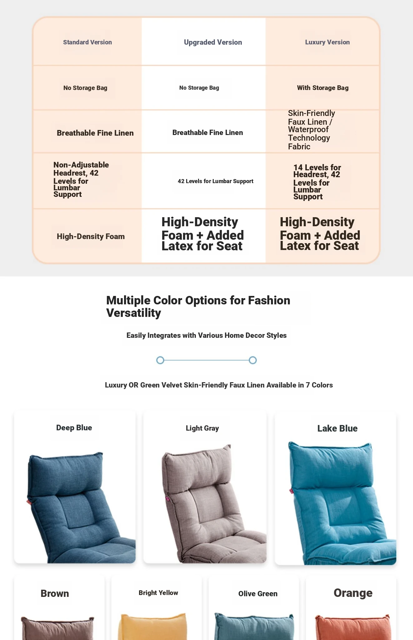 Upgraded deep blue - breathable linen + 42 adjustable waist straps + latex cushion