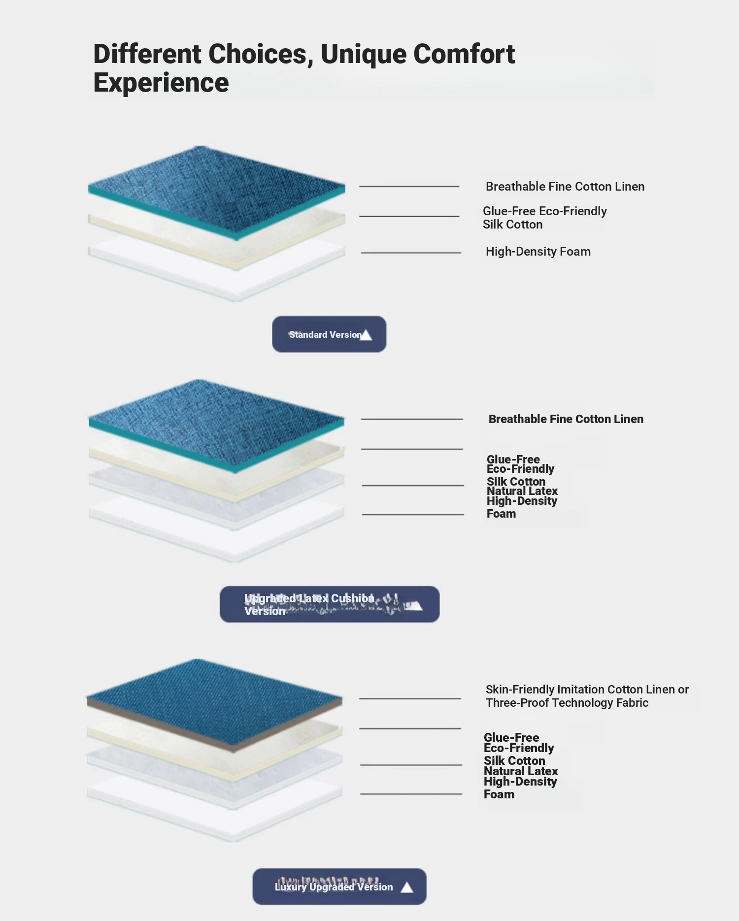 Luxurious light grey - skin-friendly linen + waist, head adjustable + latex cushion