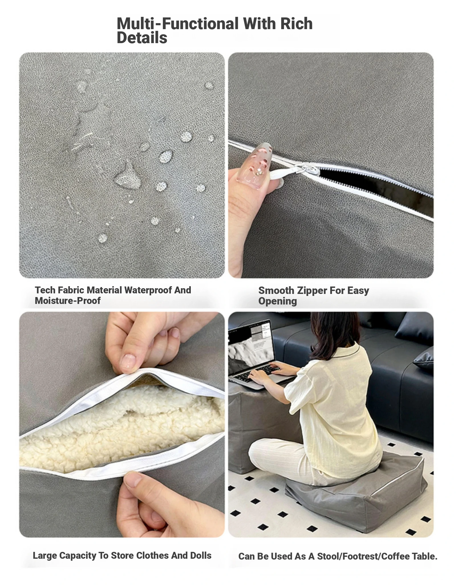 Lazy Sofa Storage for Old Clothes - Tatami Floor Cushion for Living Room and Bedroom, Compact Sofa with Back Support, Versatile Pouf and Seat Cushion