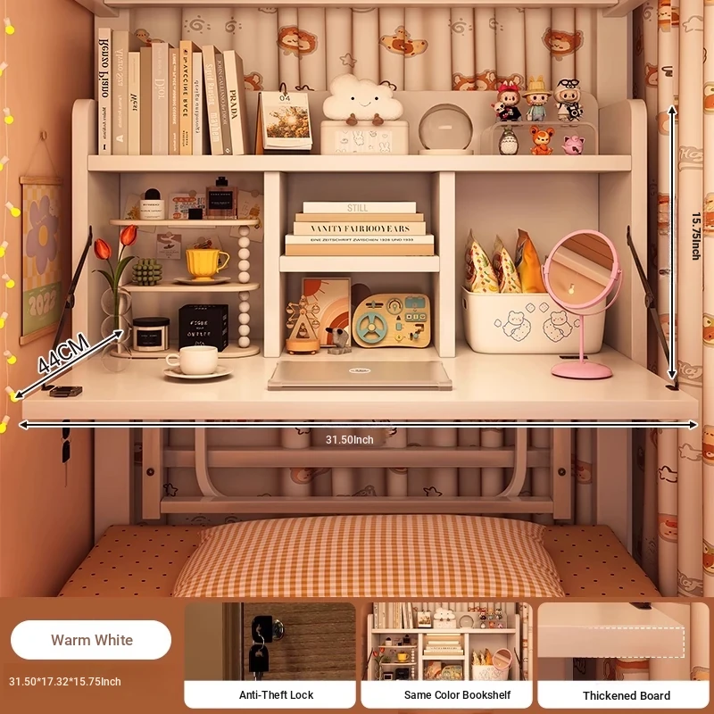[Full back + Movable bookshelf] warm white 31.50in⭐Bunk Neutral