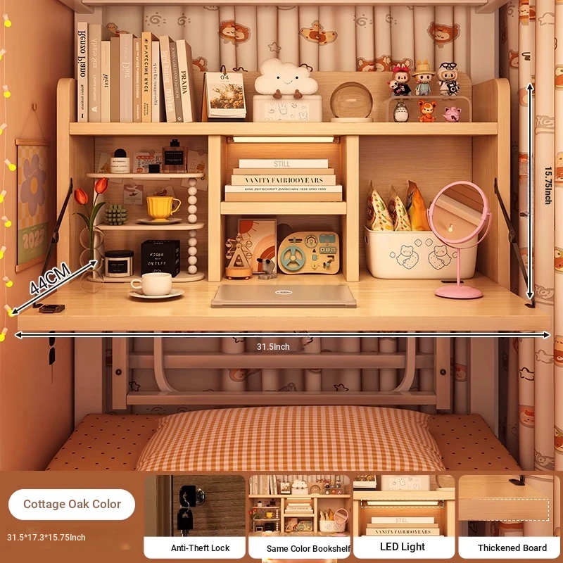 [Full back + Movable bookshelf + LED light] warm white 31.50in⭐Bunk Neutral