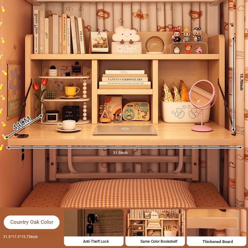 [Full back + Movable bookshelf] Maple cherry wood color 31.50in⭐Bunk Neutral