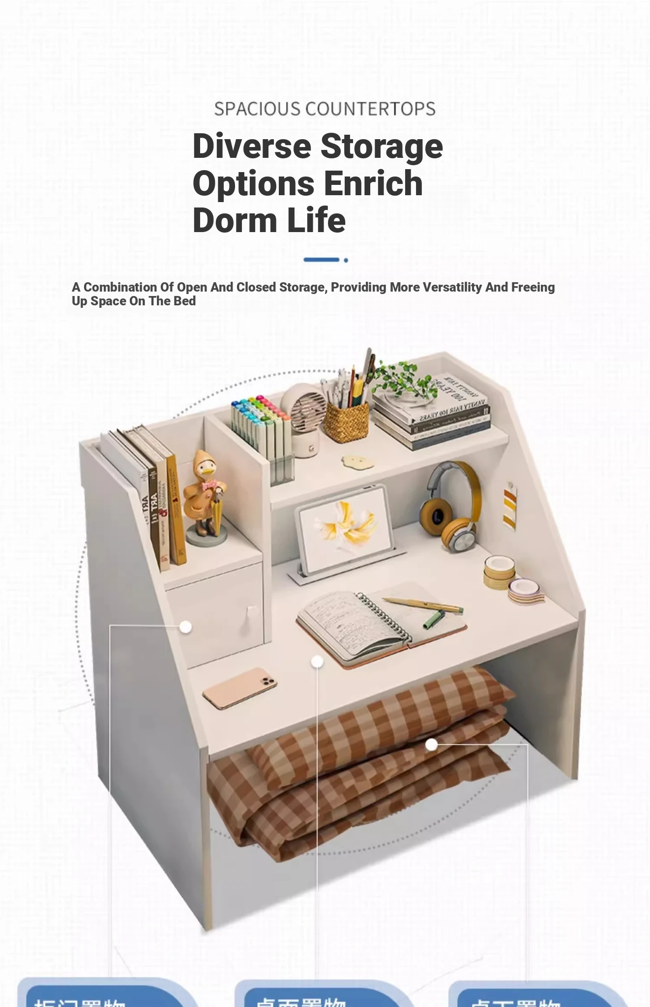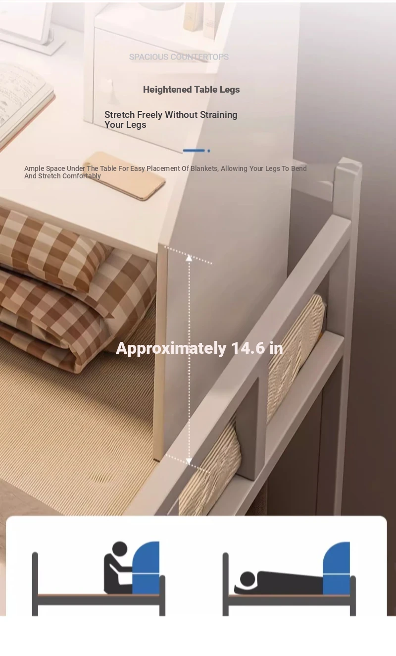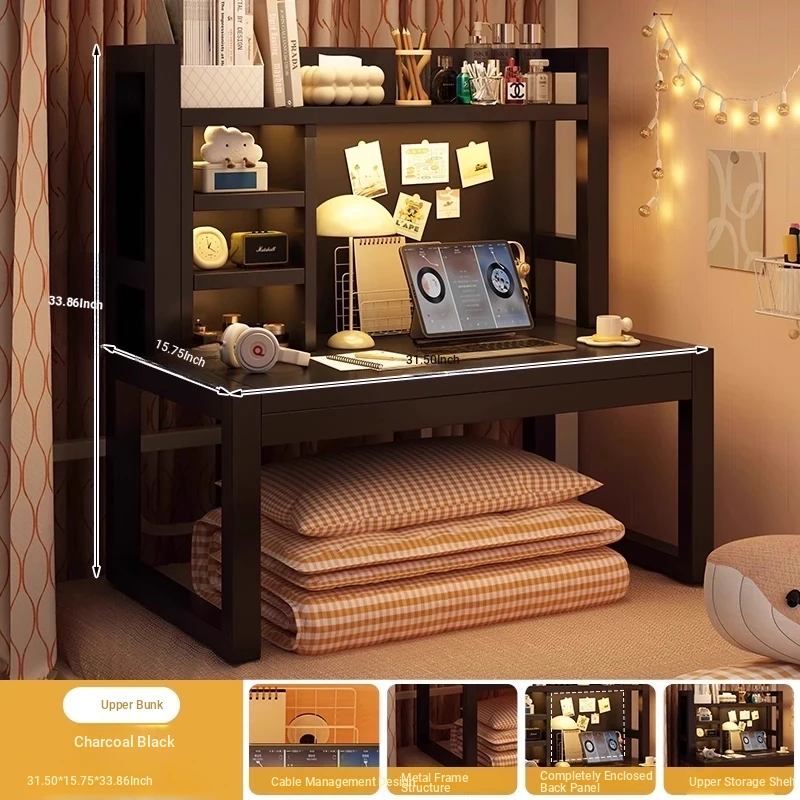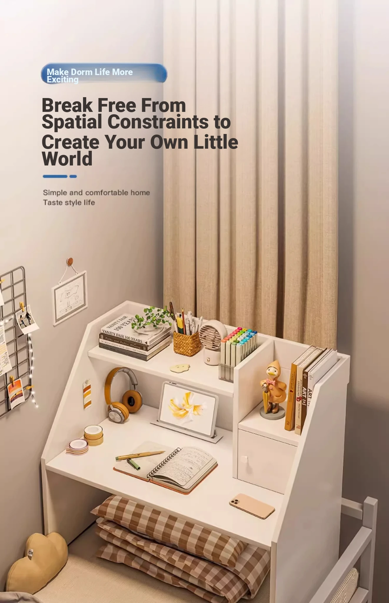 Loft Bed Desk for College Students - Multi-Functional Dormitory Study Table with Storage Shelves and Organizer for Efficient Learning and Workspace Solutions