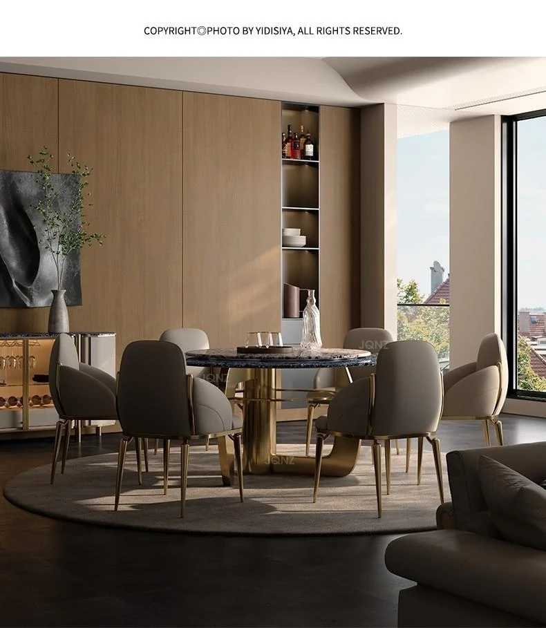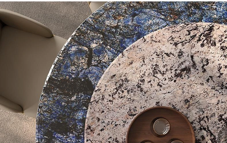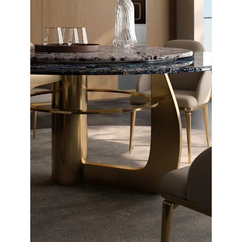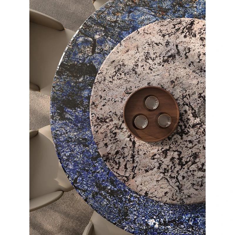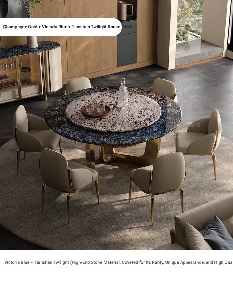Round Table/78.74in/Bolivia Blue/Tianshan Twilight Snow Turntable/Champagne Gold