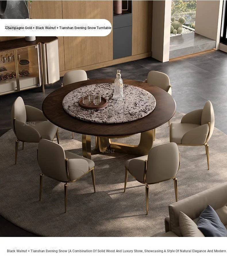 Round Table/78.74in/North American Black Walnut + Tianshan Twilight Snow Turntable/Champagne Gold