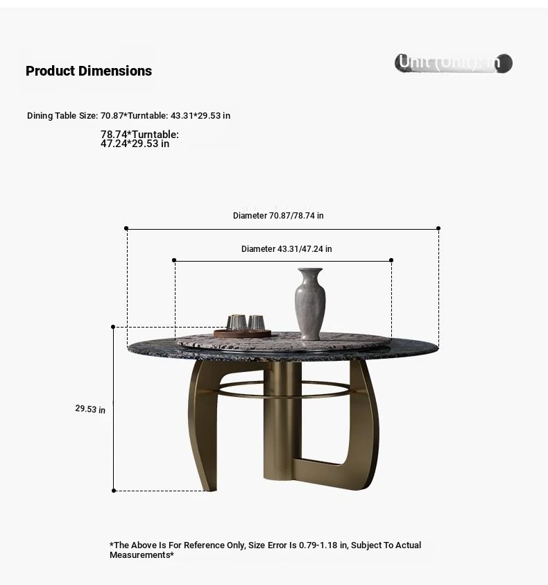 Round Table/70.87in/Bolivia Blue/Tianshan Twilight Snow Turntable/Champagne Gold