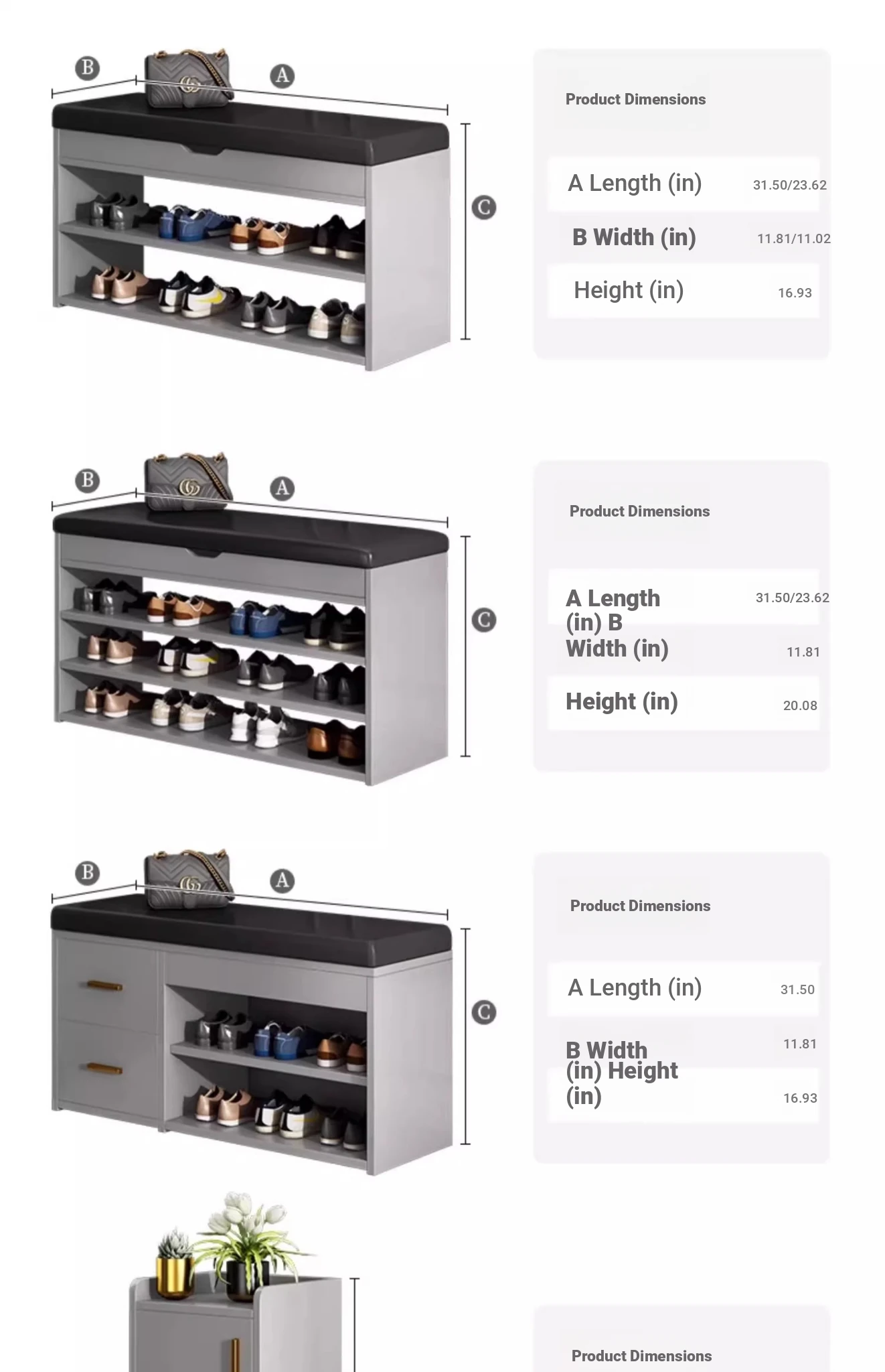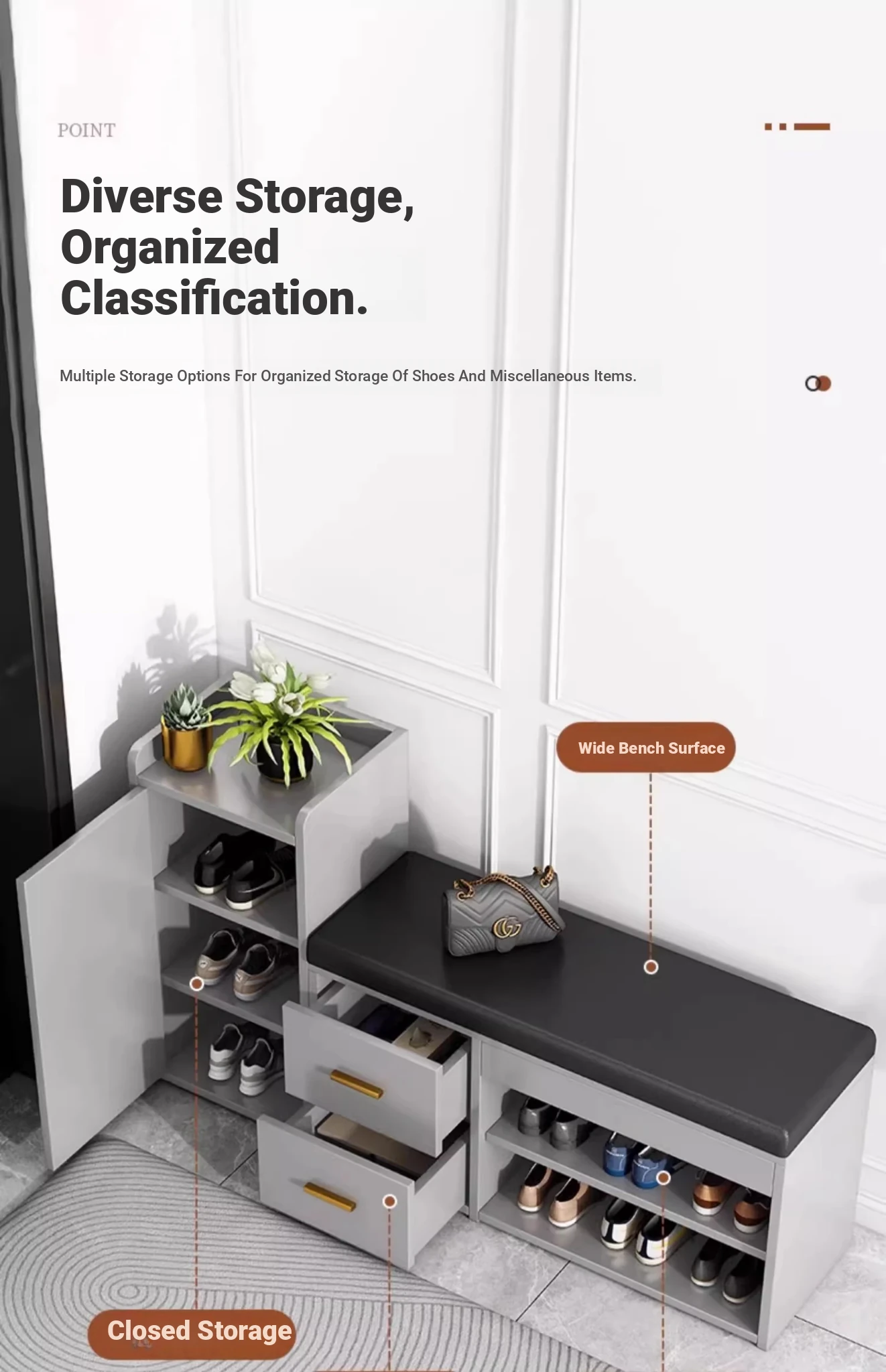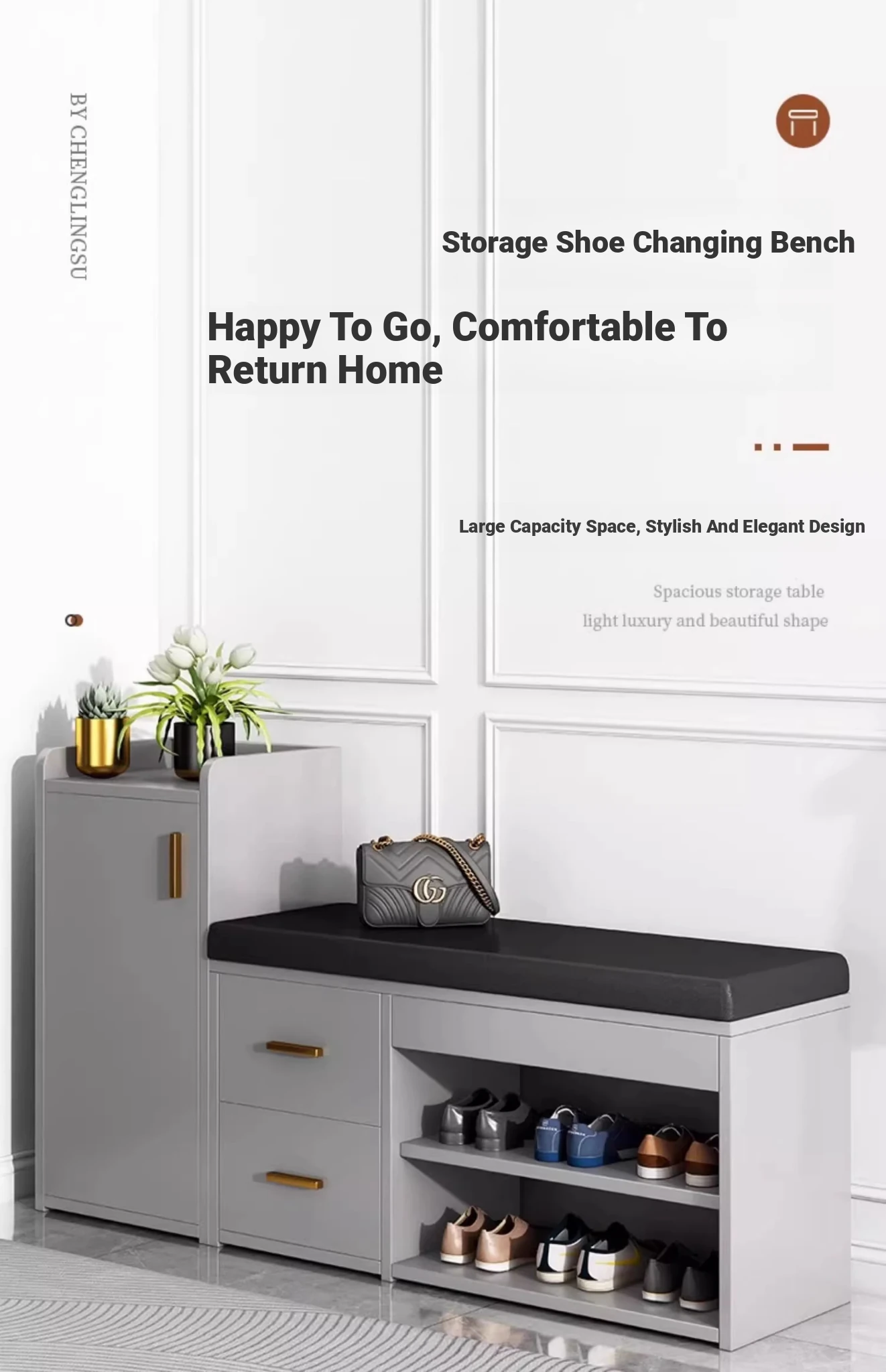 Italian Accessible Luxury · Flexible Matching] can be Matching changing shoes stool cabinet 10.24in light gray