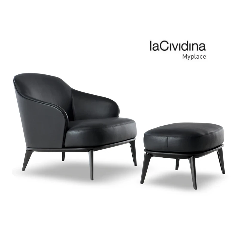 Luxury Genuine Leather Armchair - Nordic Style High-Back Single Sofa Chair - Perfect for Hotels & Home Relaxation - Comfortable Recliner Chair for Leisure