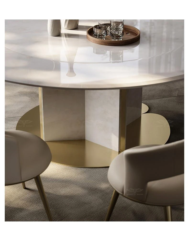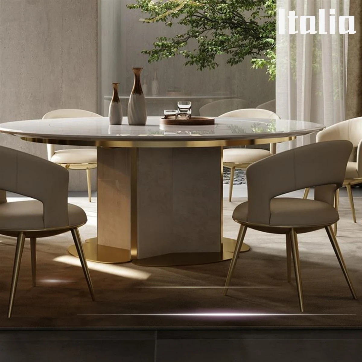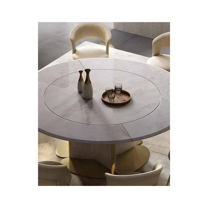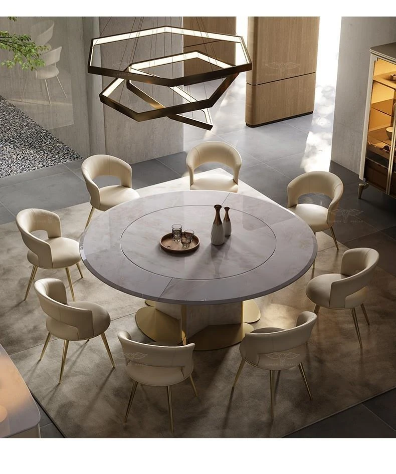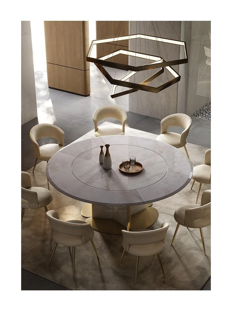 Luxury Natural Marble Round Dining Table Set - Elegant Embedded Rotating Table & Chair Combo for Villa and Spacious Living Spaces