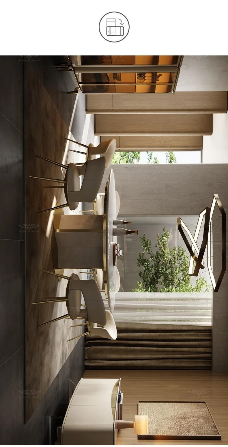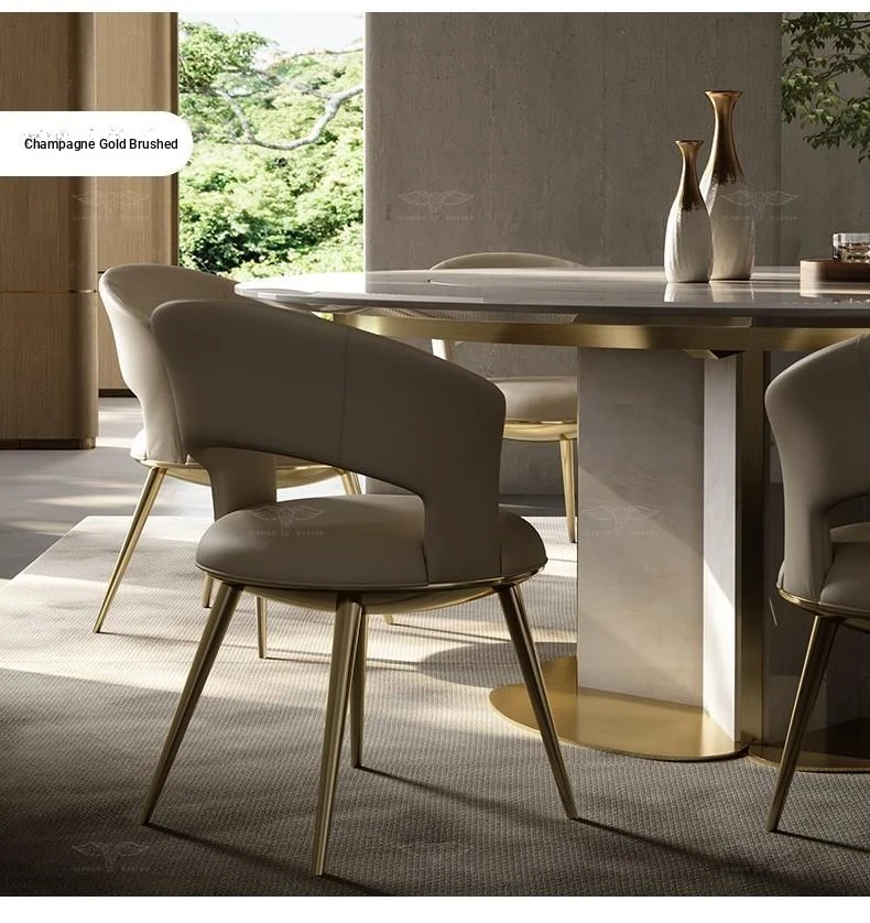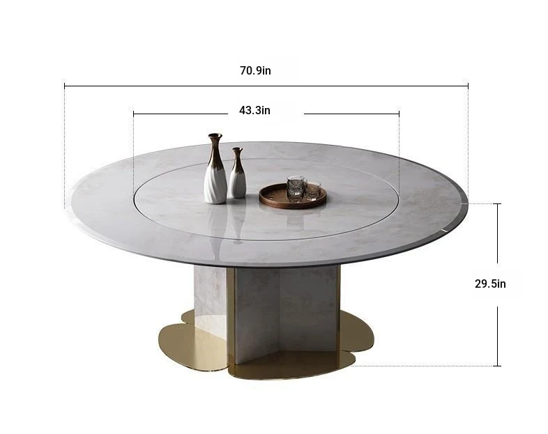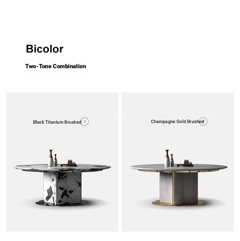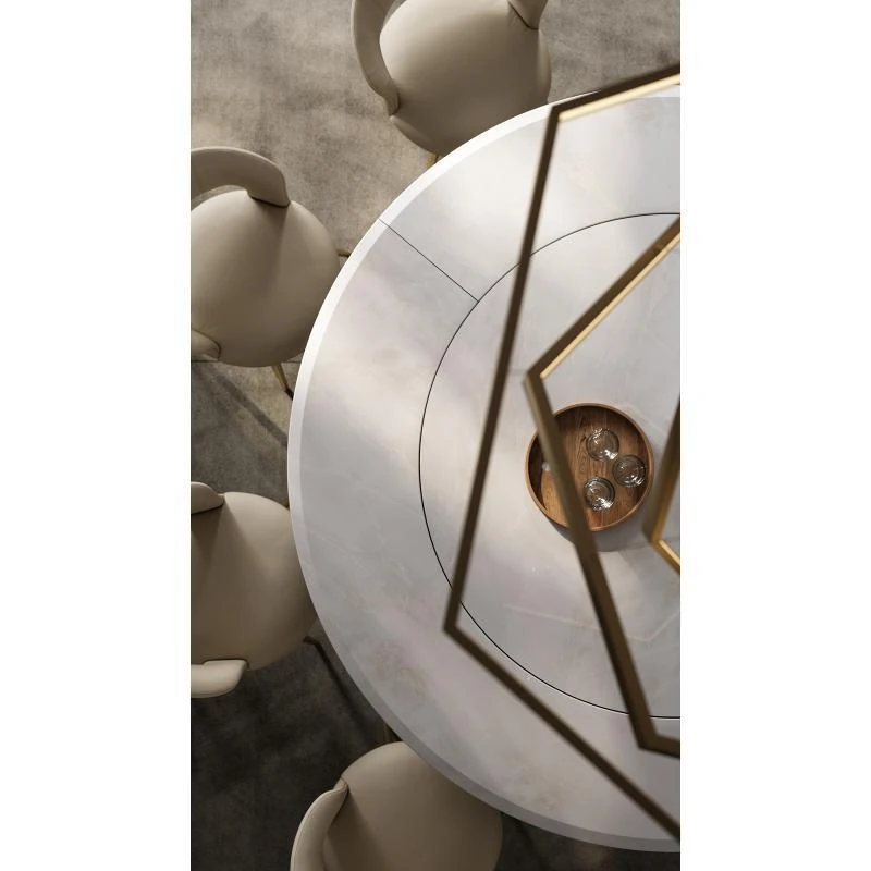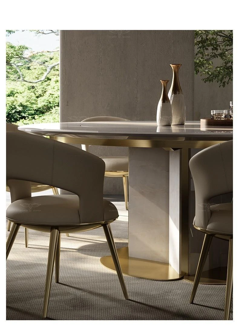 Luxury Natural Marble Round Dining Table Set - Elegant Embedded Rotating Table & Chair Combo for Villa and Spacious Living Spaces