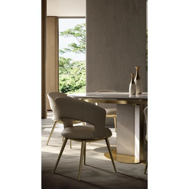 Dining Table/78.74in/Cary Icestone Natural Stone/Champagne Gold