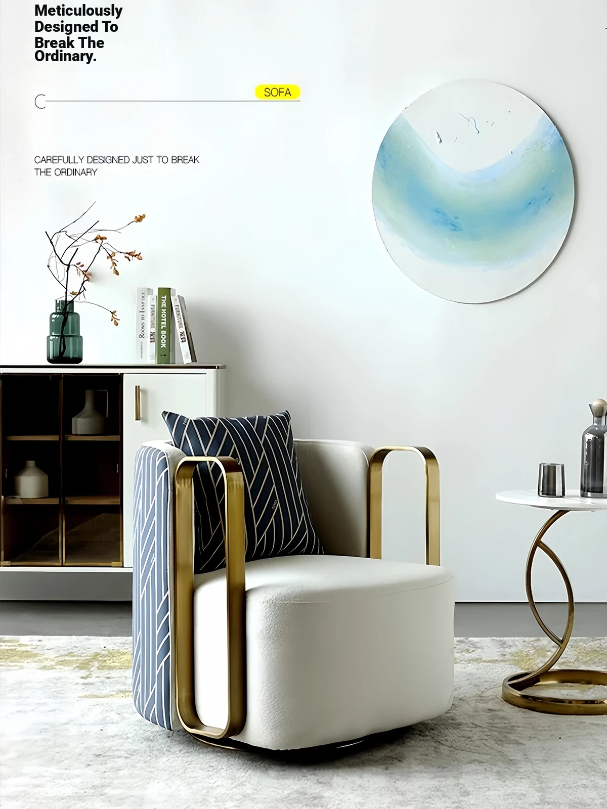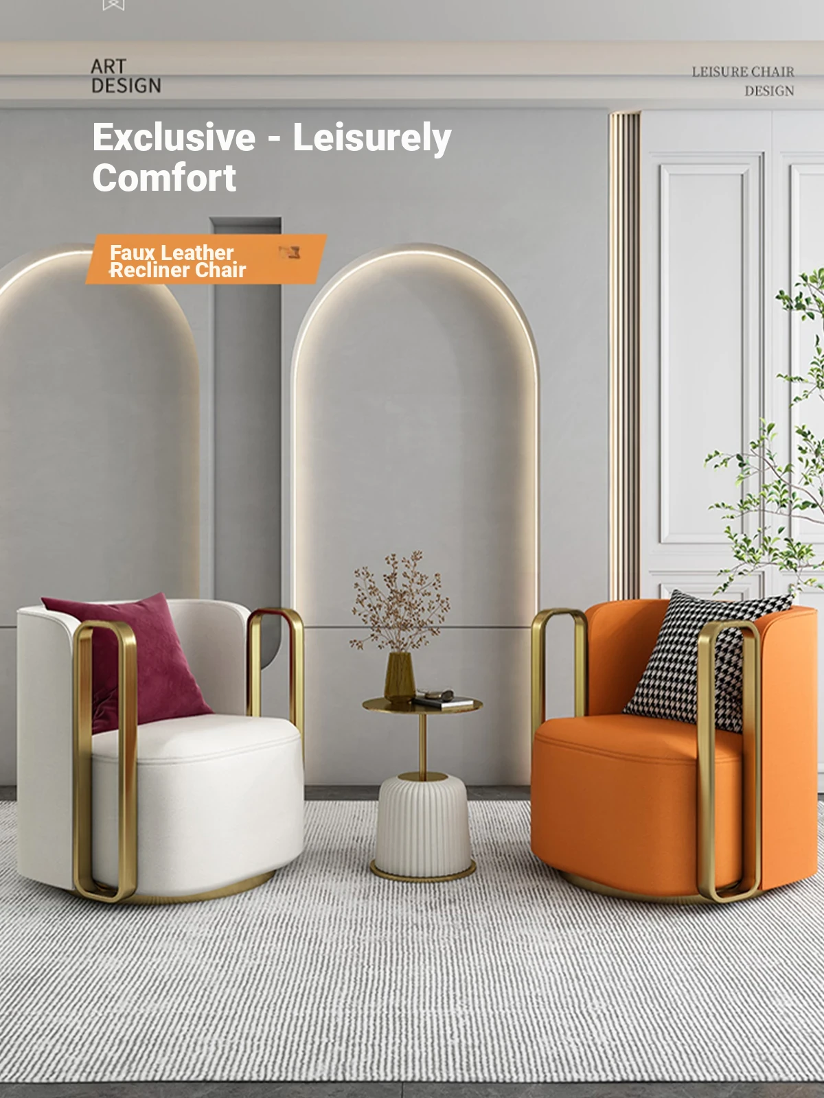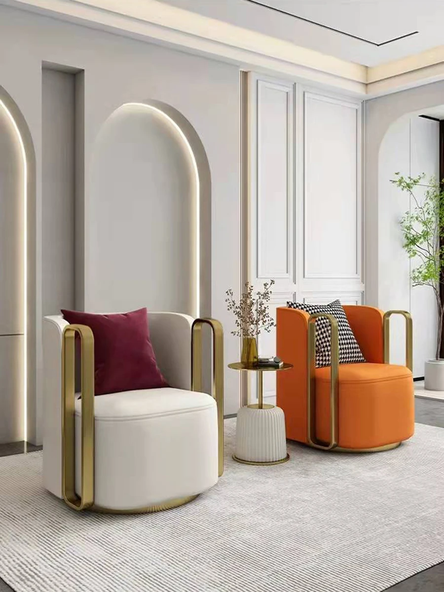 Luxury Single Lounge Chair - Stylish Rotating Genuine Leather Tiger Chair for Balcony, Perfect for Relaxation and Hotel Meetings, Trendy Design by Designers