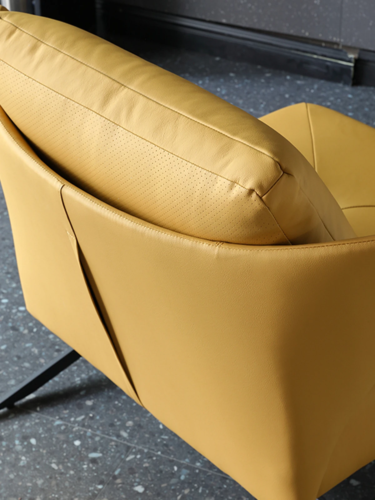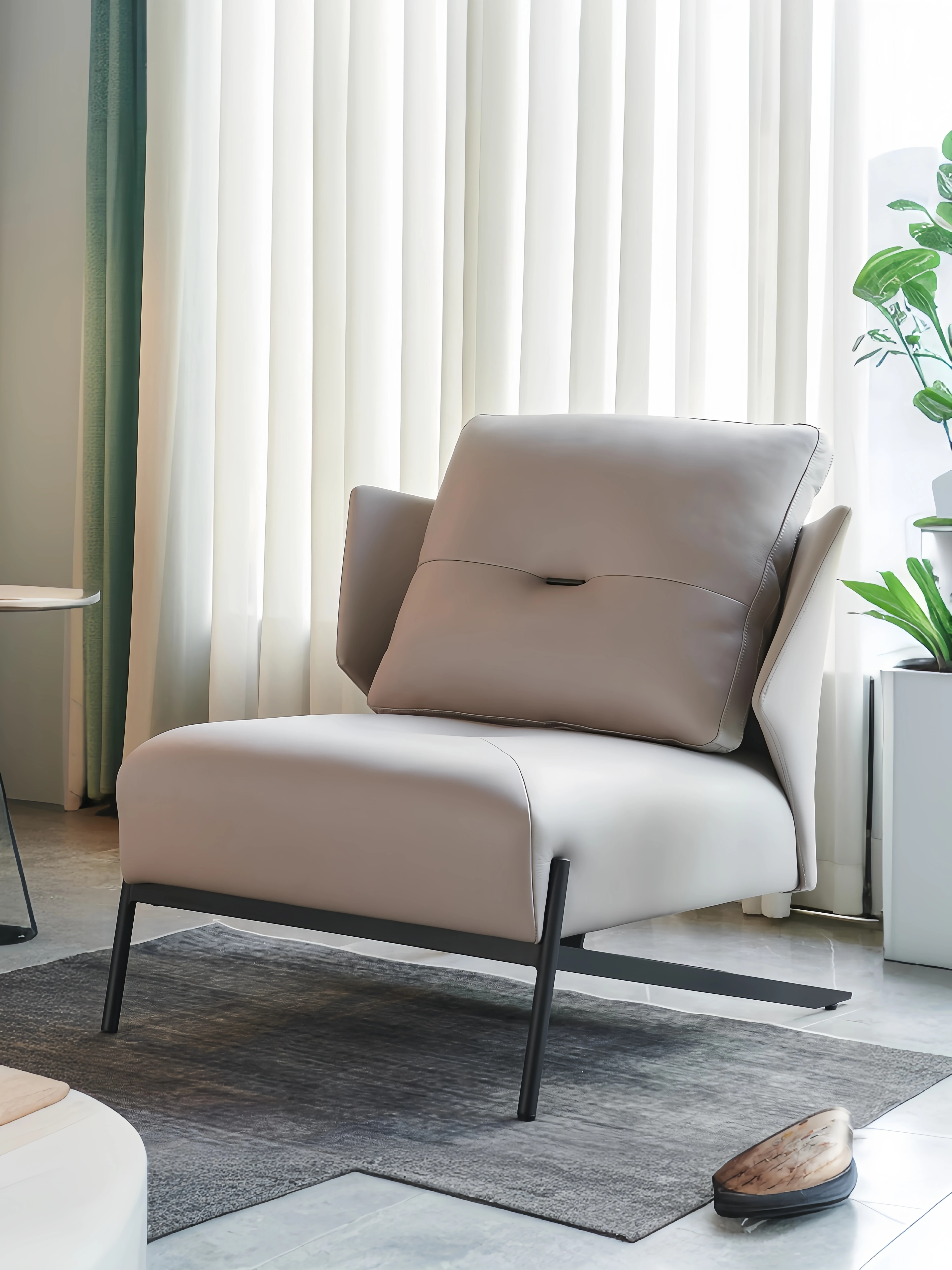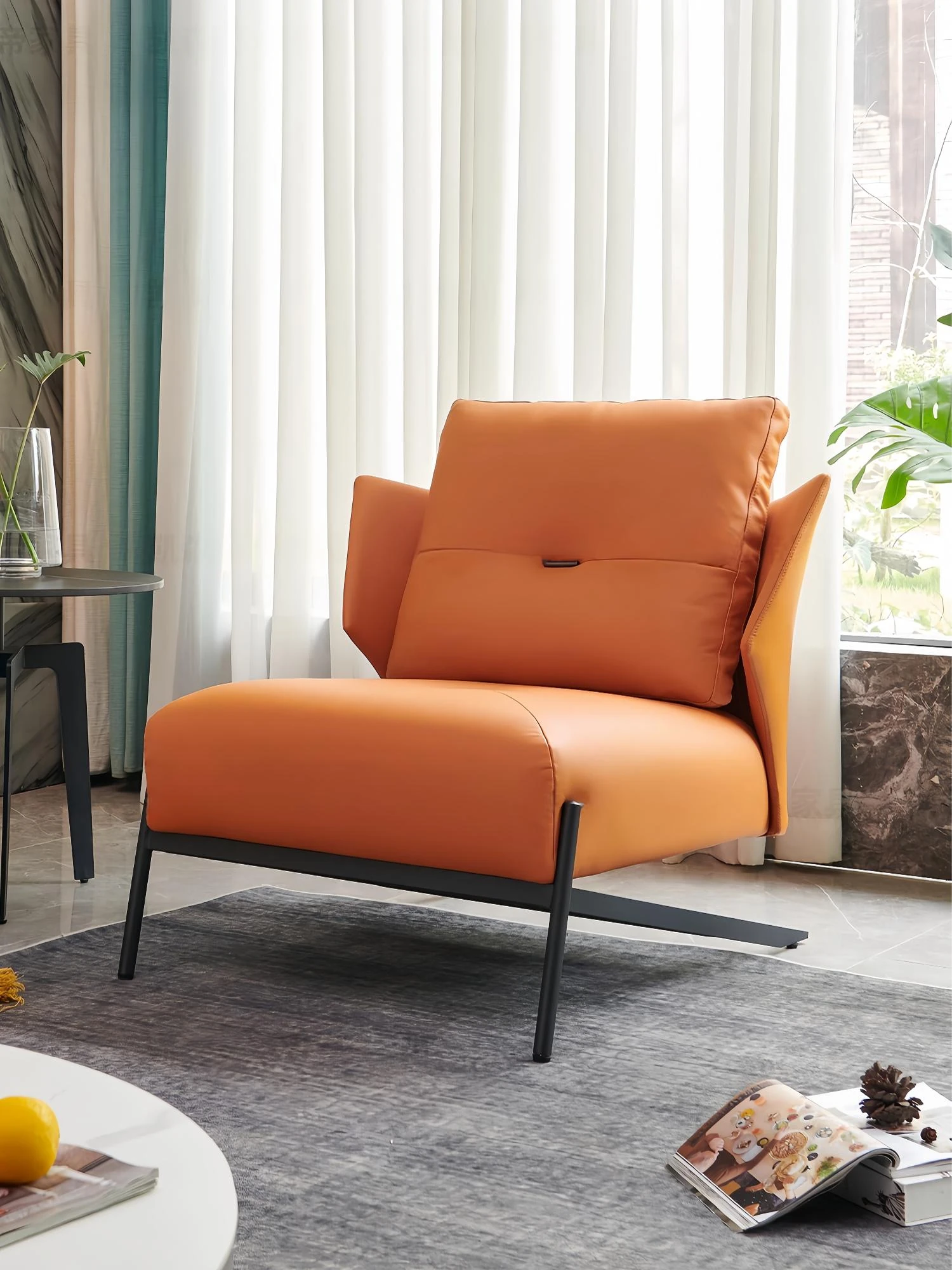 Minimalist Genuine Leather Single Sofa Chair - Modern Design for Home, Perfect for Small Spaces, Balcony or Living Room, Trendy Lazy Chair for Stylish Living.