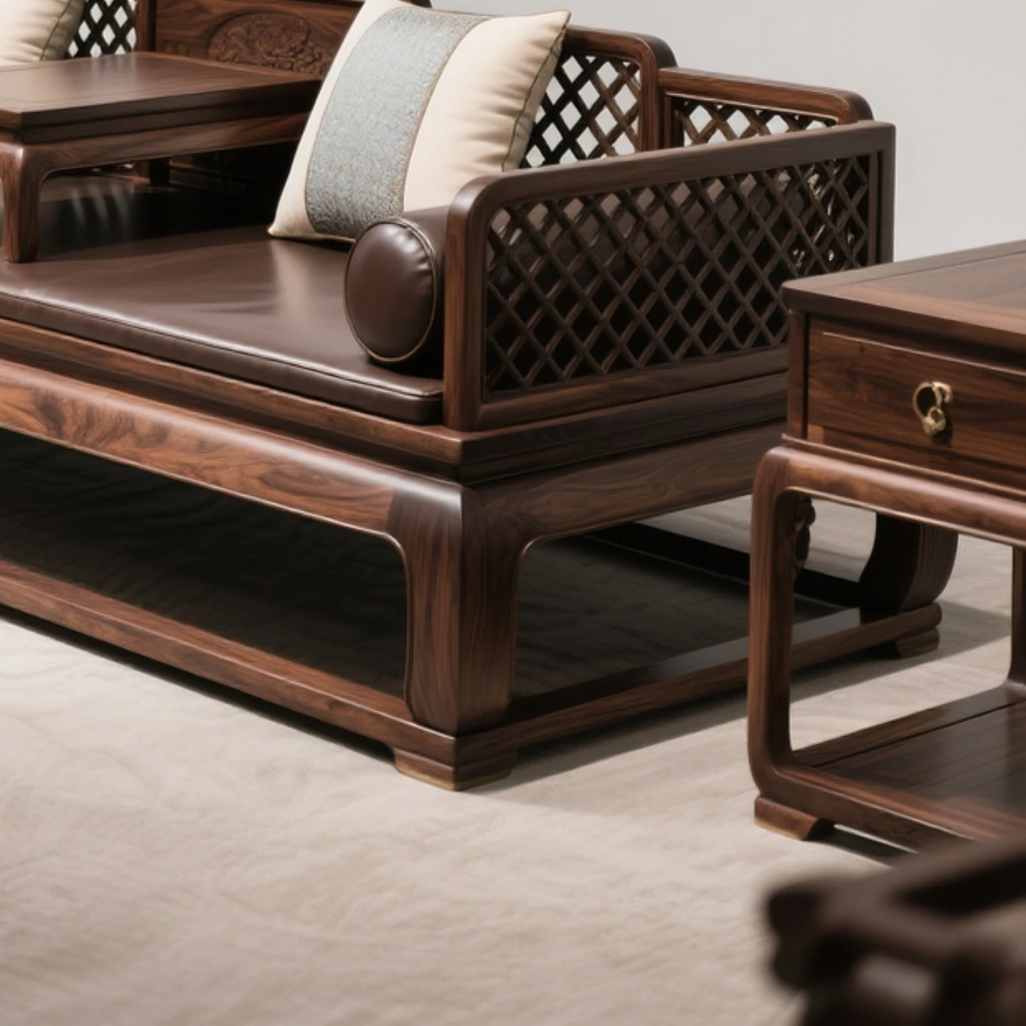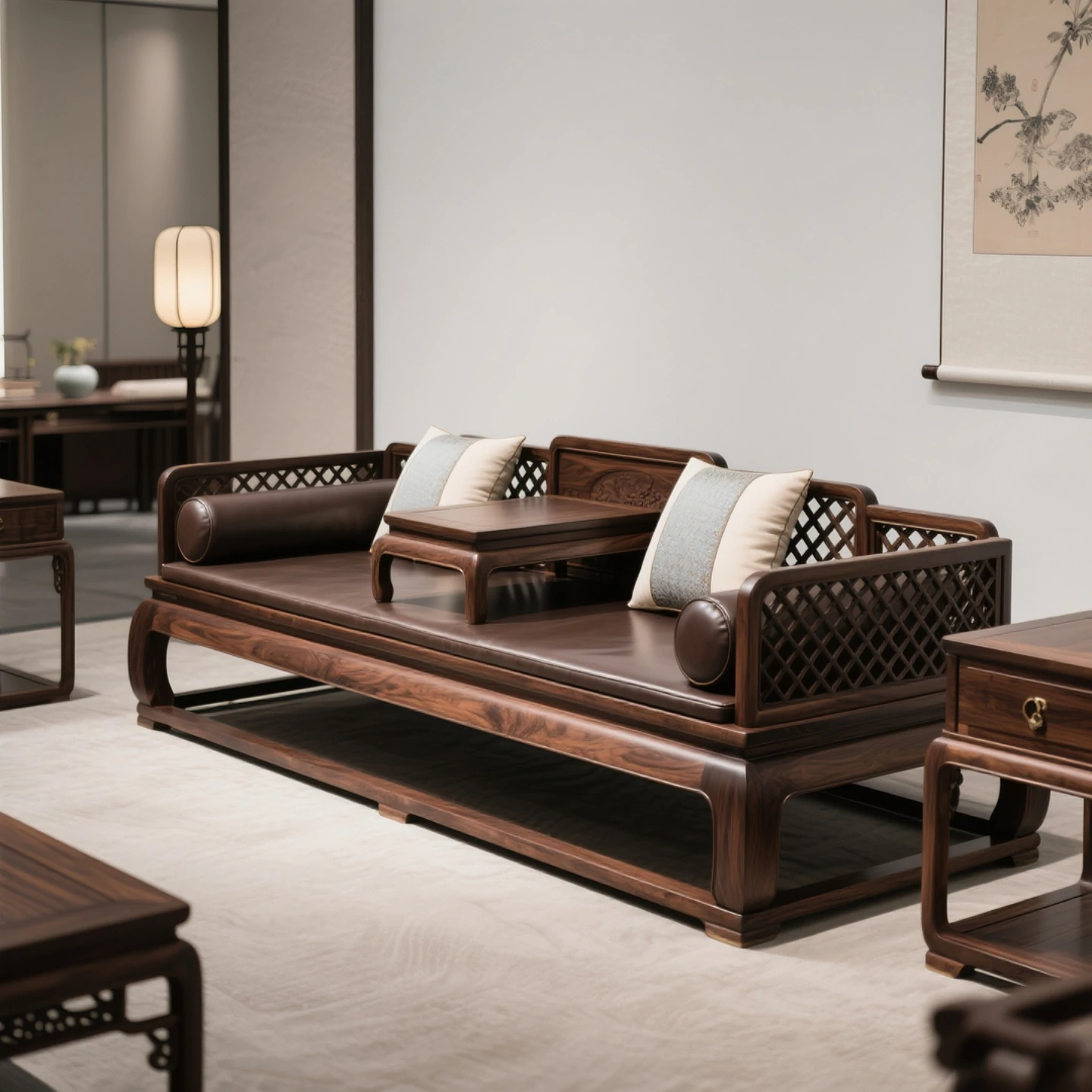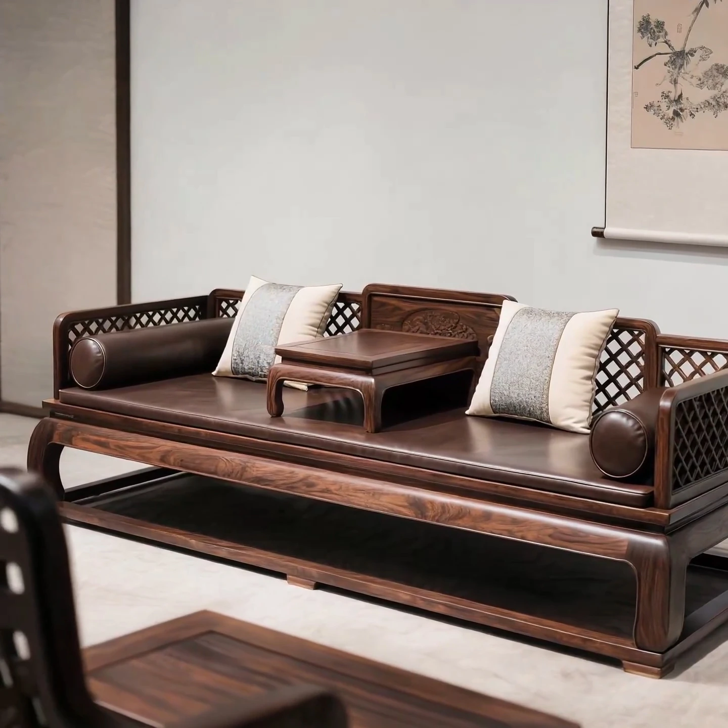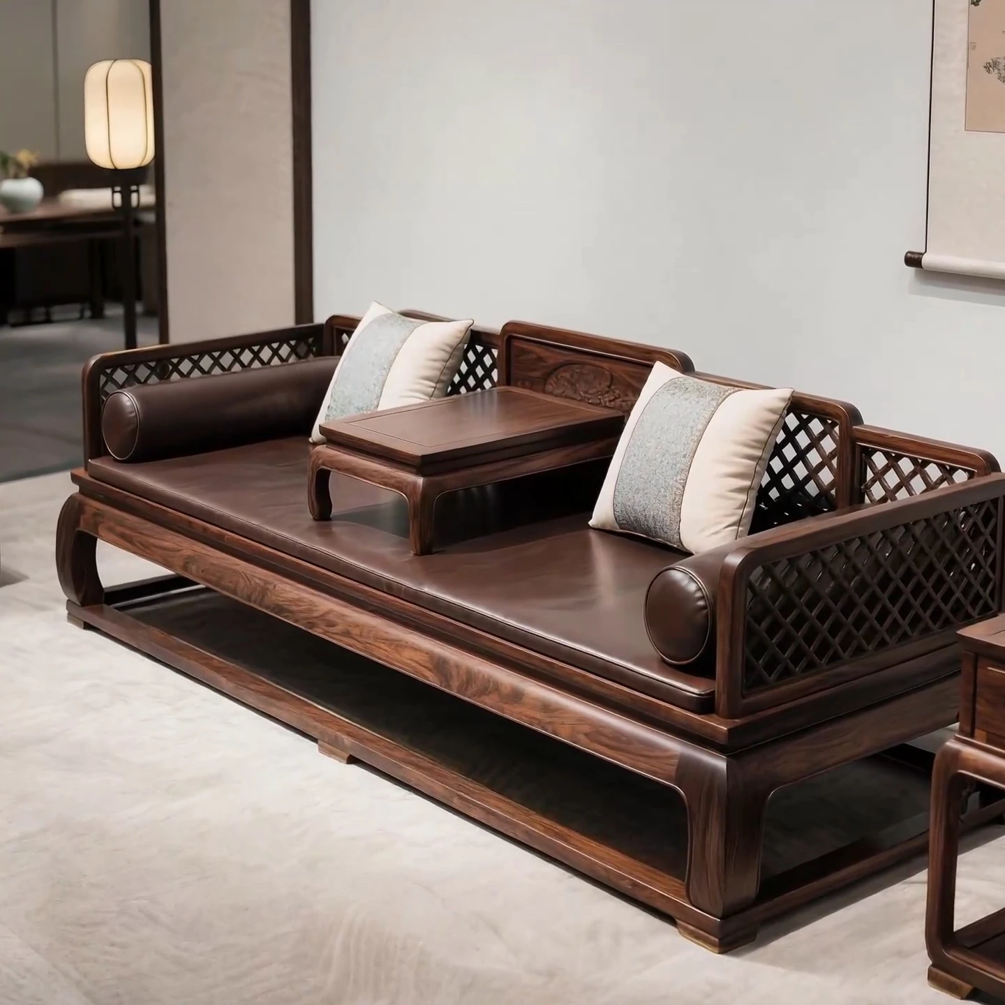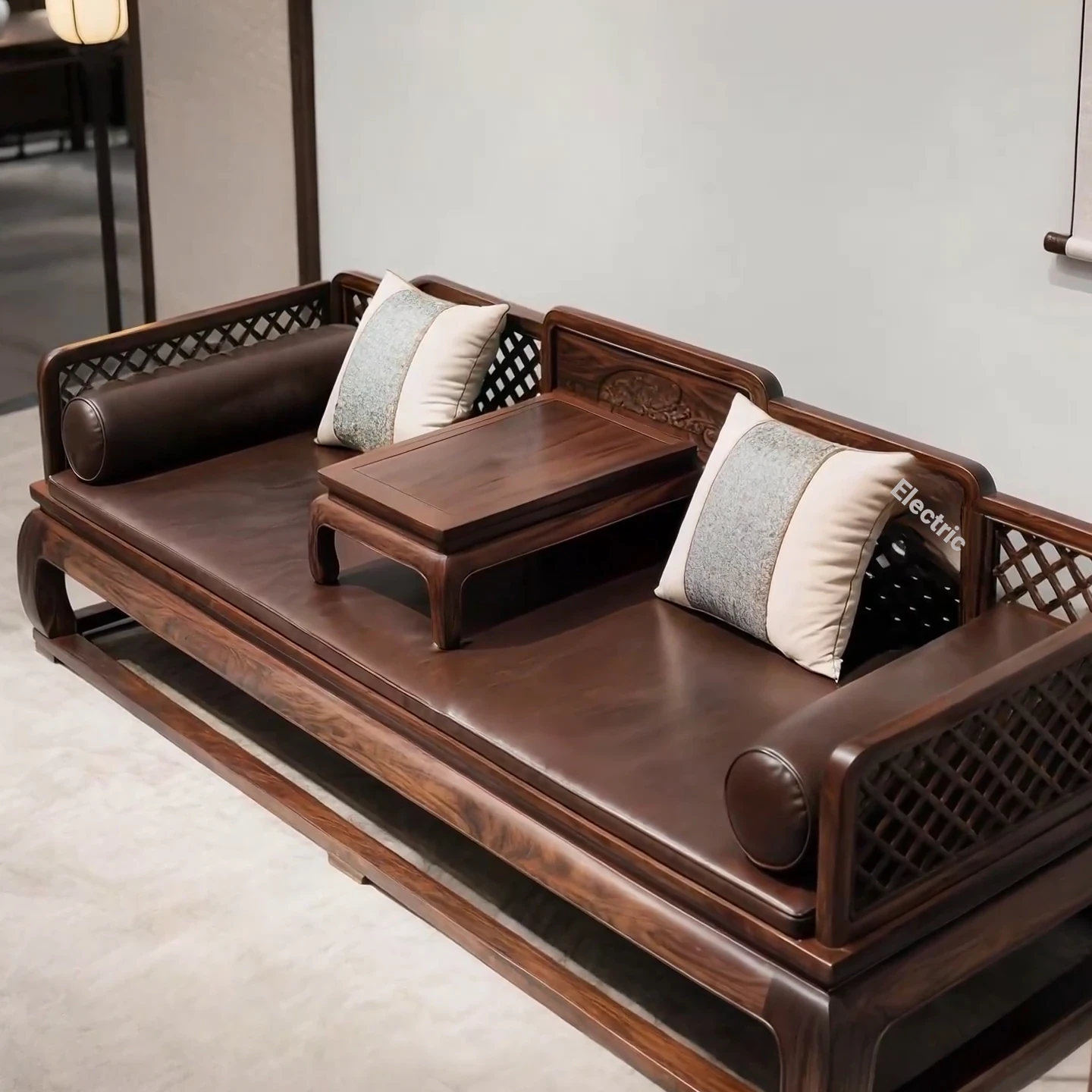 Modern Chinese Style Rohan Bed - Compact Design, Imported North American Black Walnut Wood, Push-Pull Solid Wood Sofa for Home Use, Stylish and Functional Sofa Bed Furniture