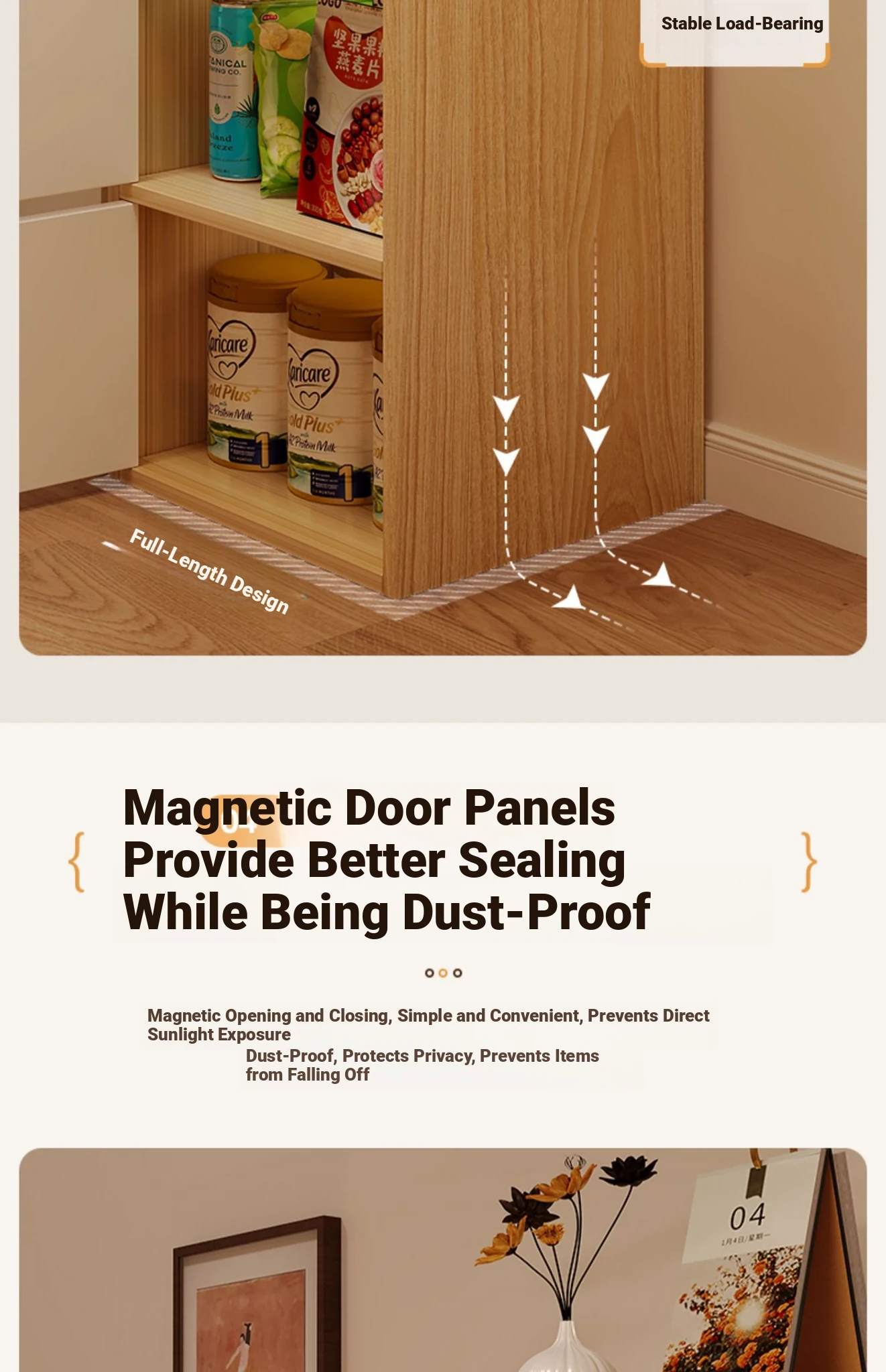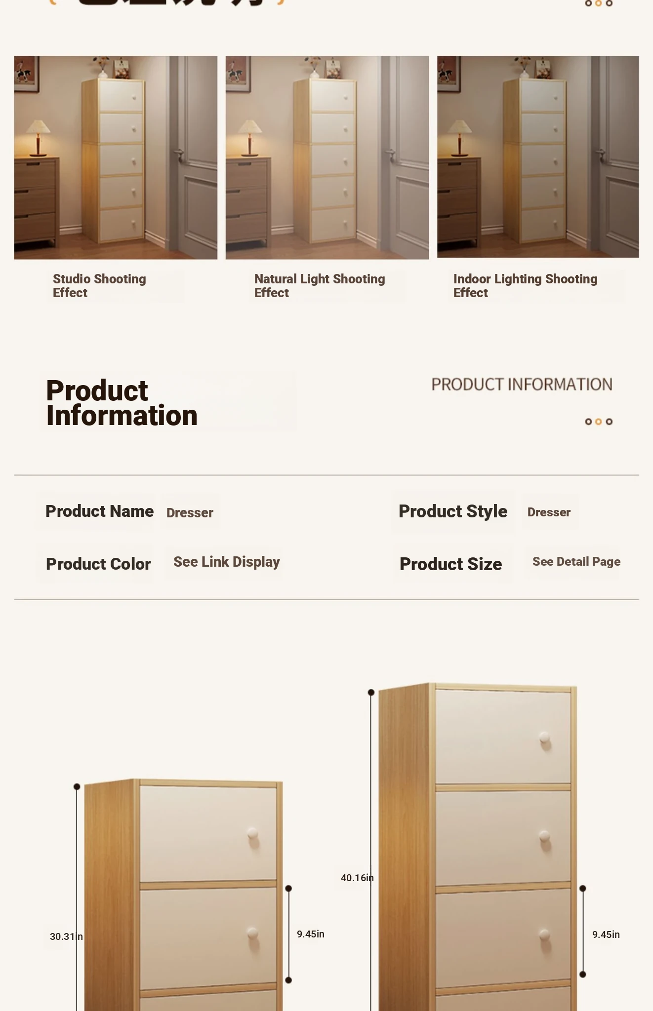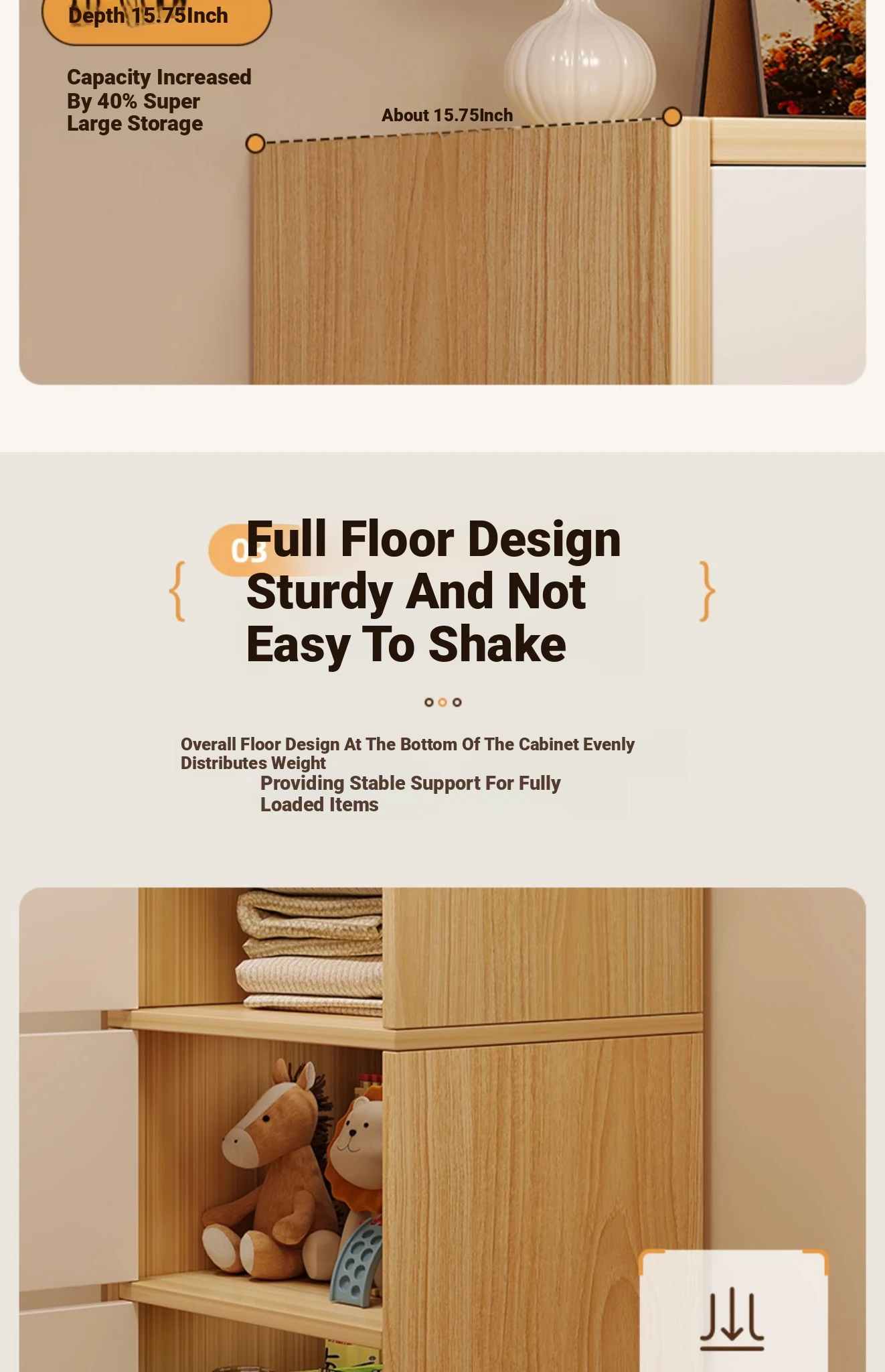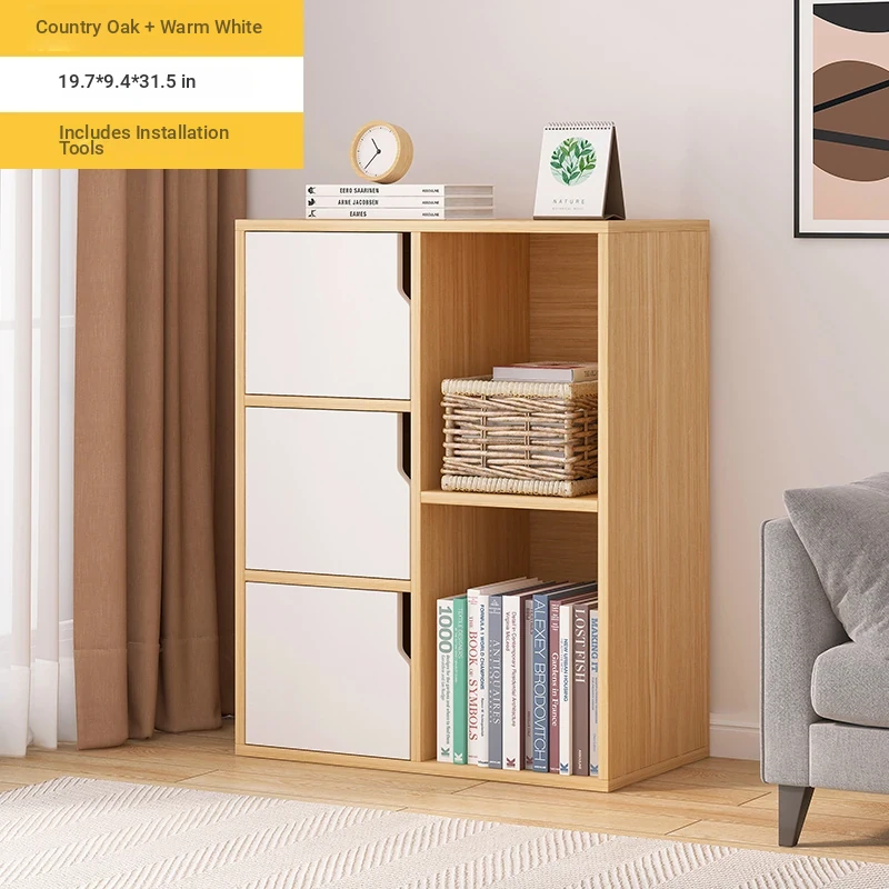[Upgraded three doors and two squares]-pastoral Oak + warm white 19.69in*9.45in*31.50in