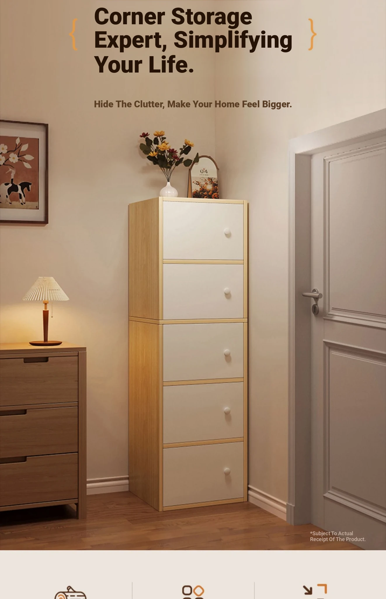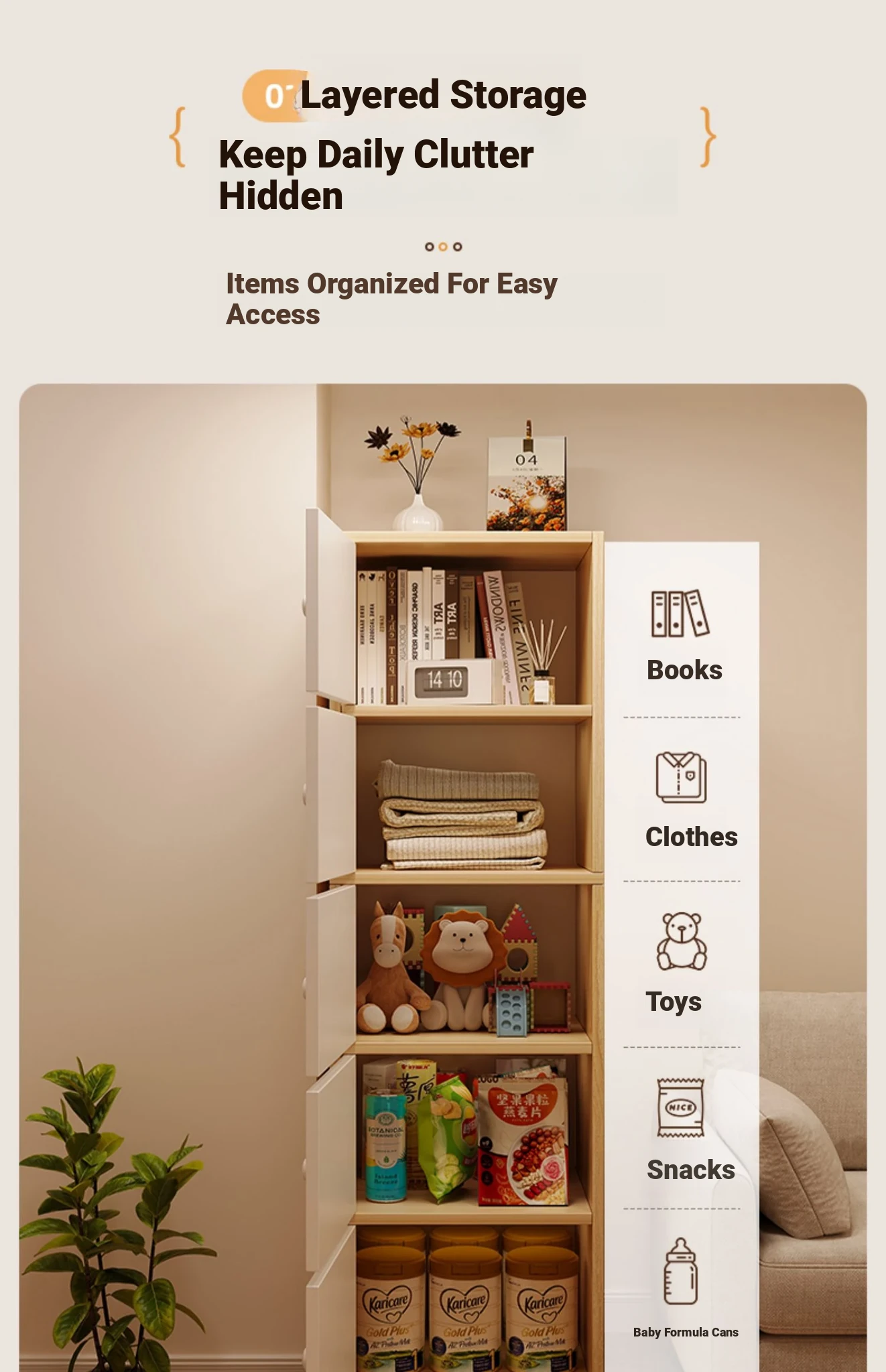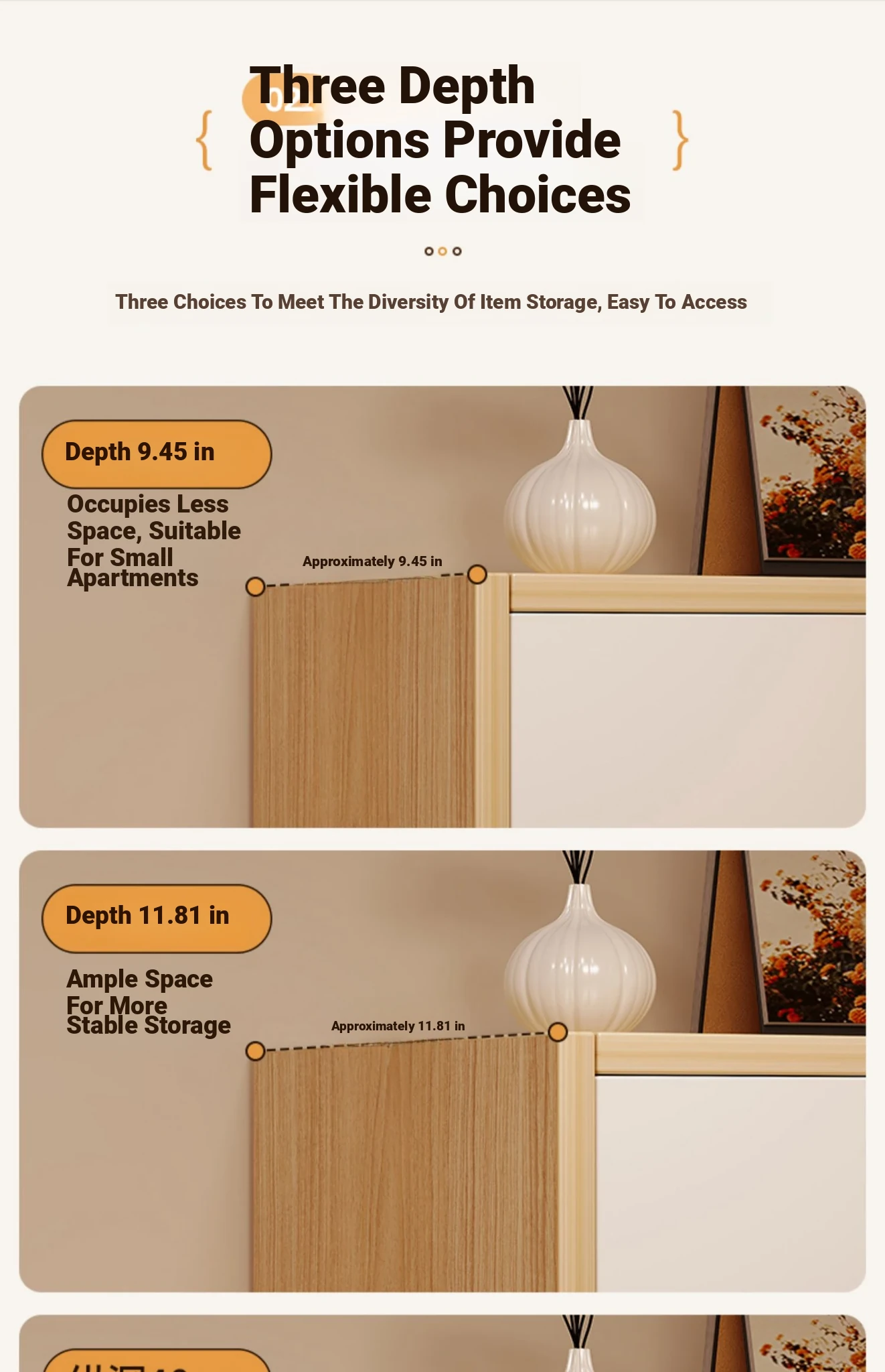 [Can be used as shoe cabinet] 3-layer-warm white width 11.81in
