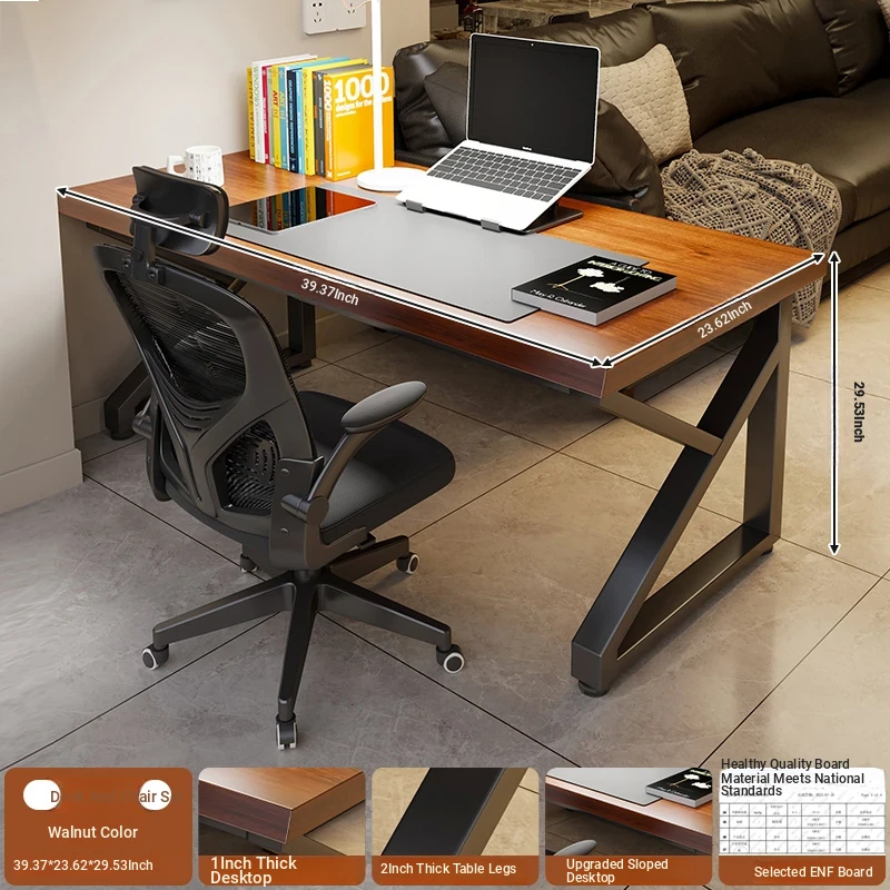 [Upgraded table and chair combination] walnut color 39.37in*23.62in + Engineering chair