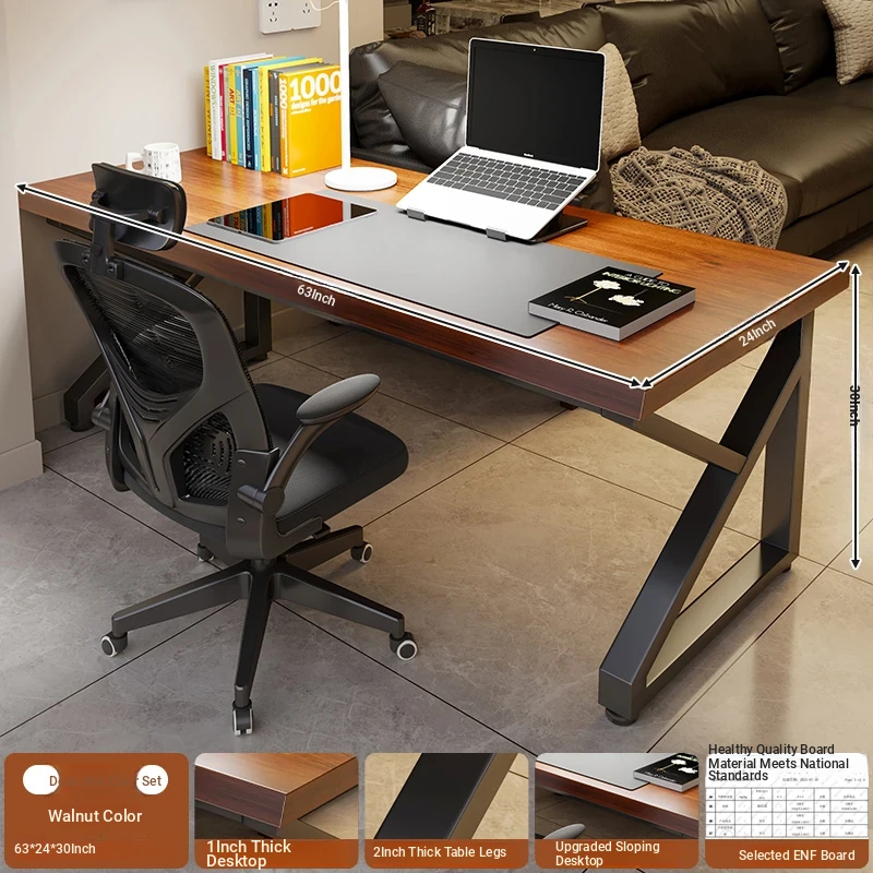 [Upgraded table and chair combination] walnut color 62.99in*23.62in + Engineering chair