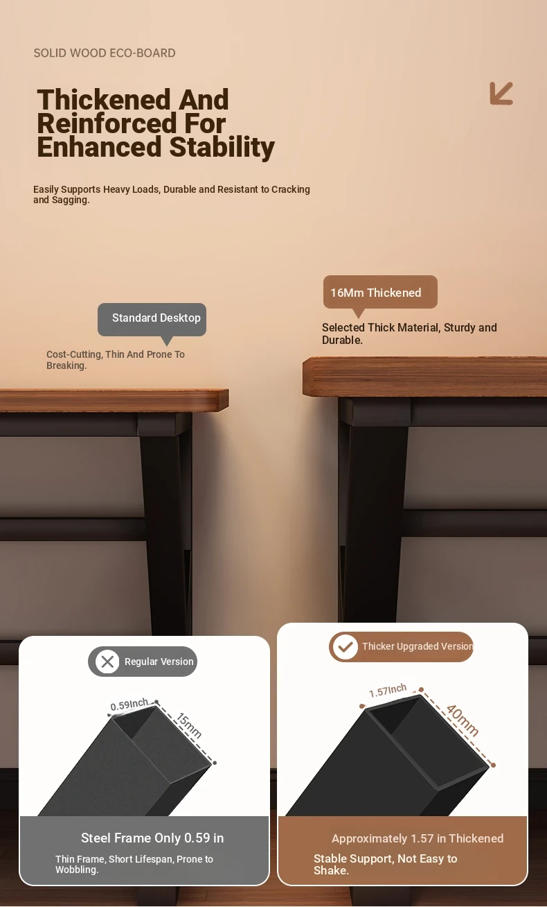 [Main Figure K -0.63in thickened Solid Wood Core] Yuan Ye Oak Color 80 * 23.62in 1.57in Legs