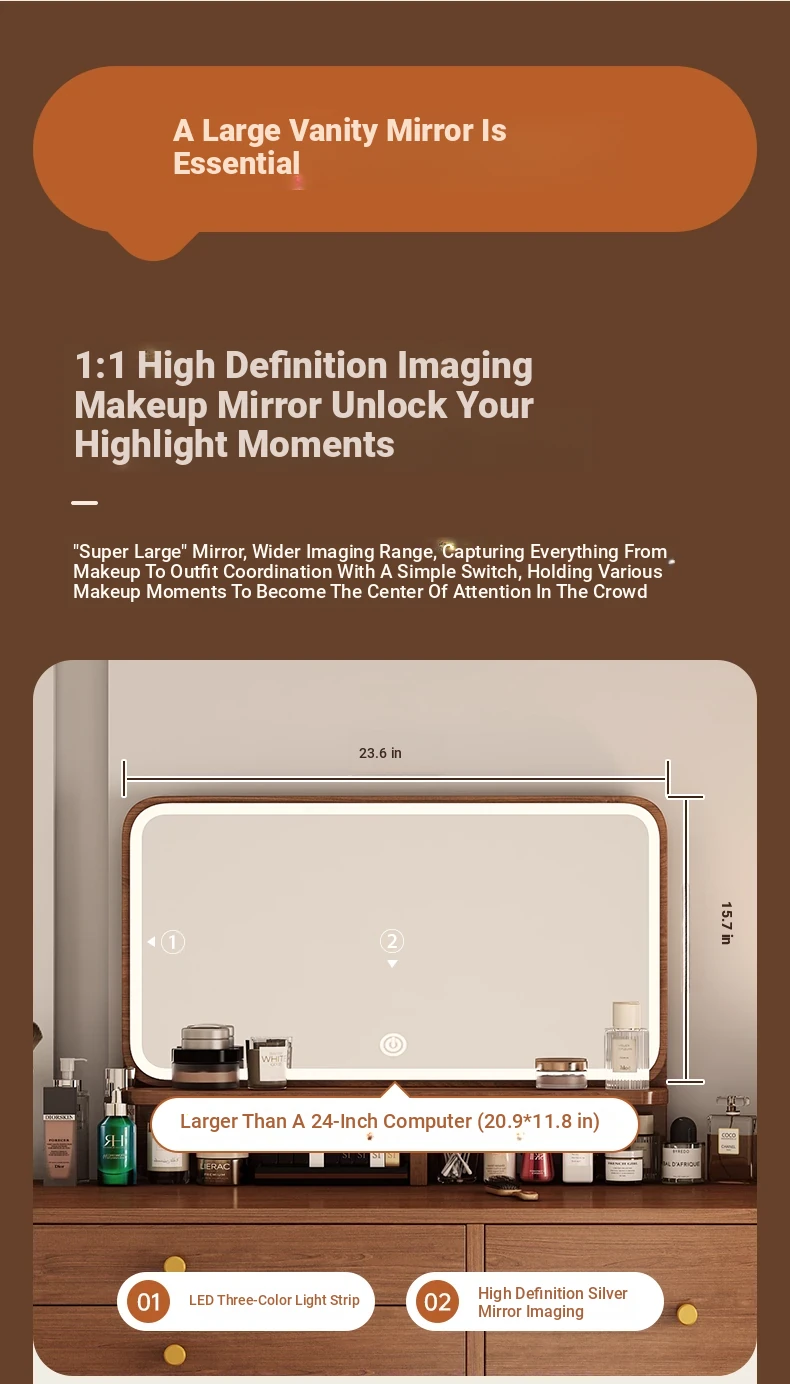 [Side cabinet + touch mirror + chair] 39.37in-55.12in