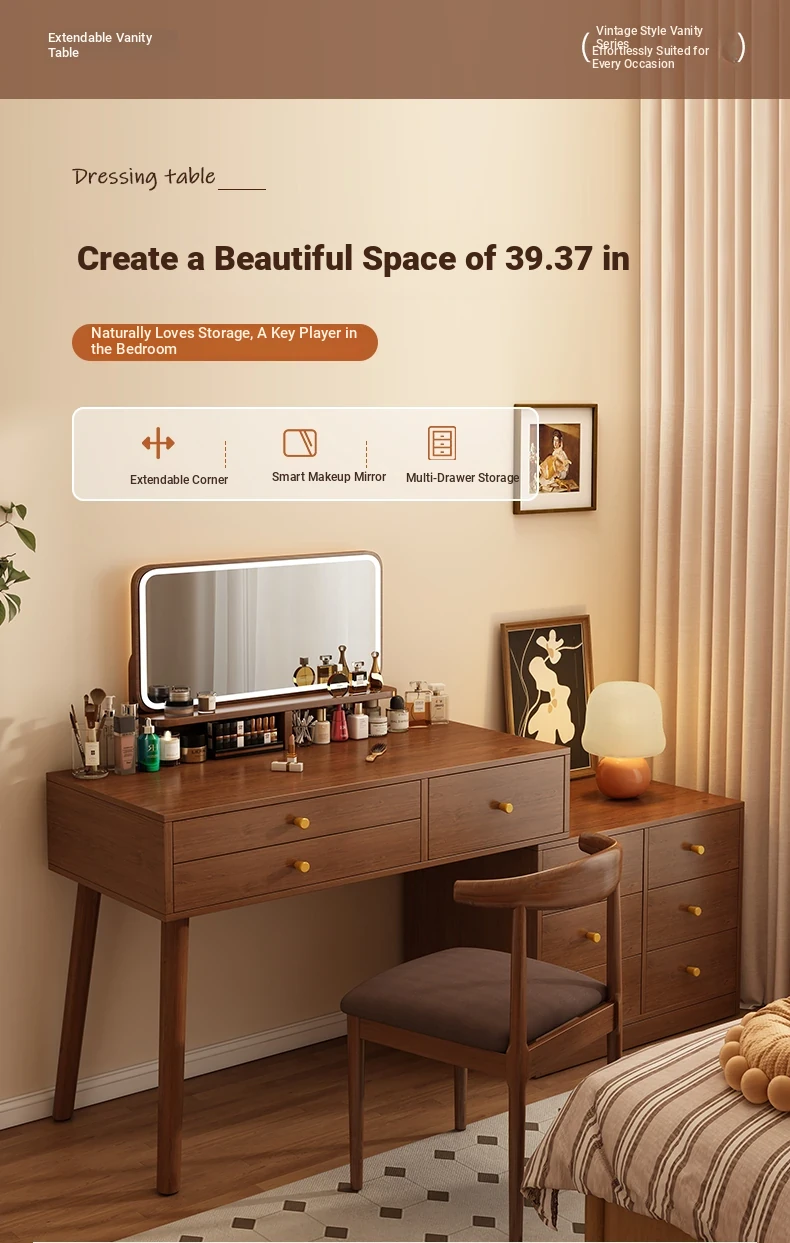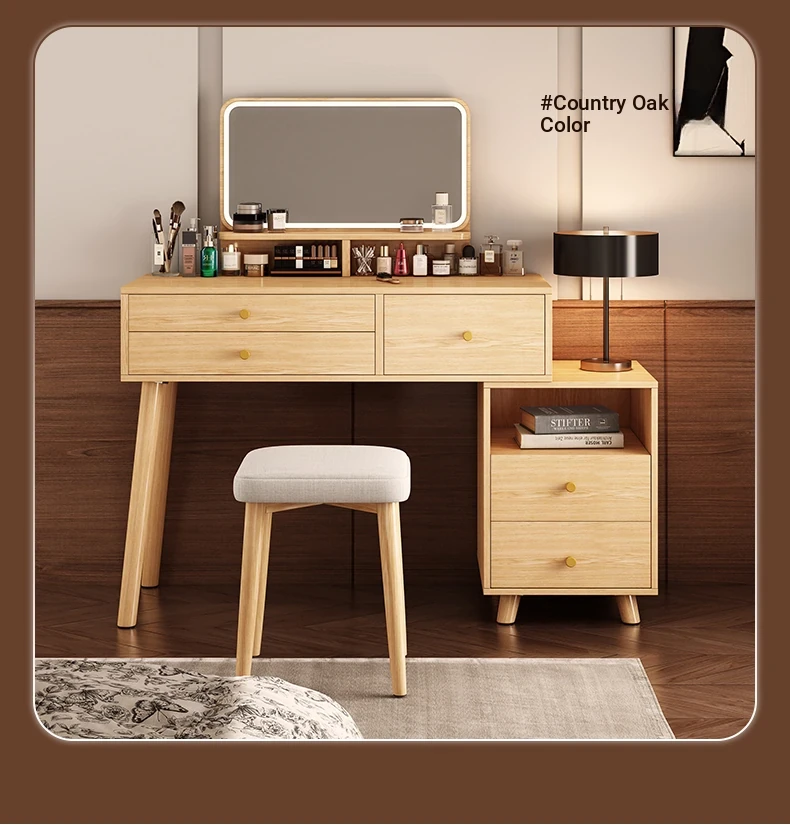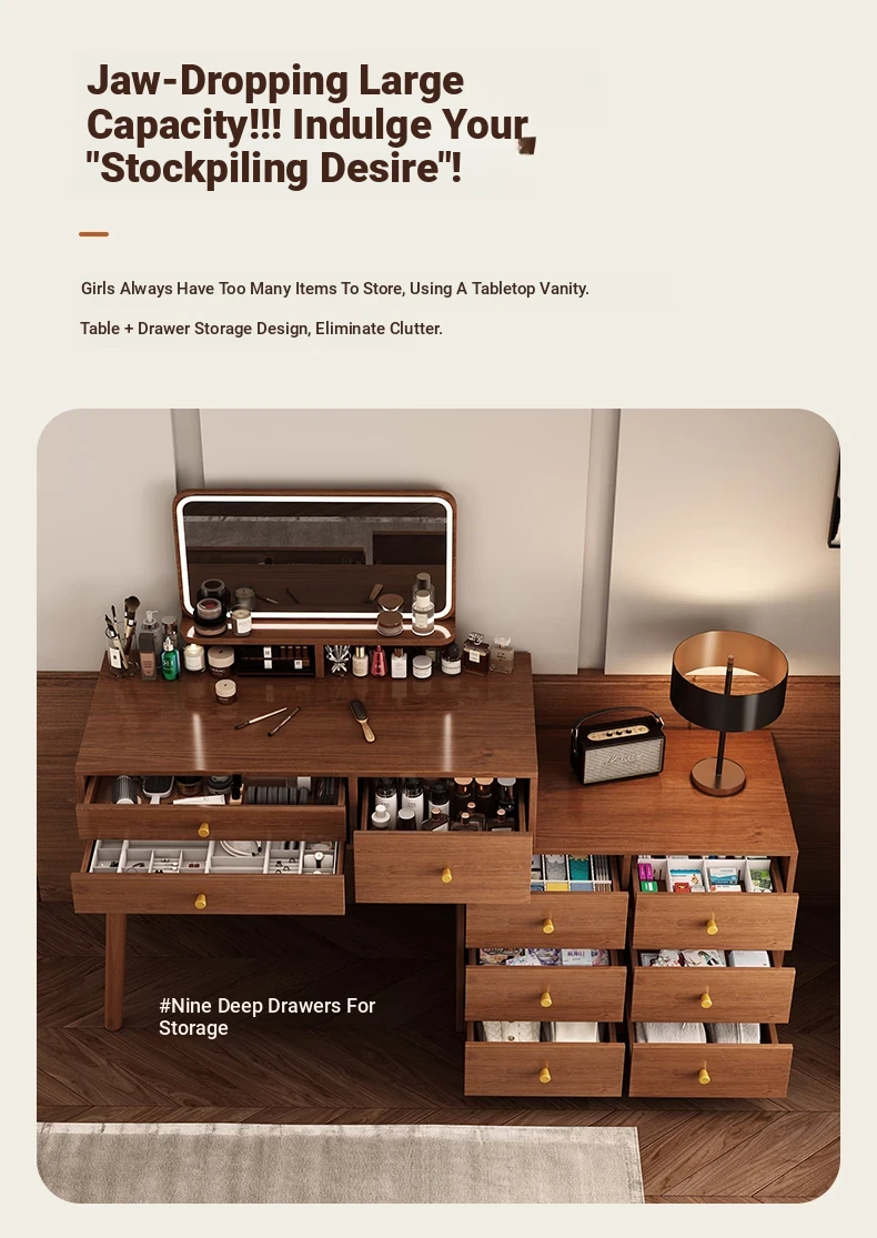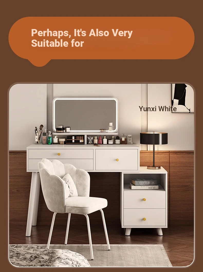 Modern Minimalist Makeup Vanity with Storage Cabinet - 2025 New Design, Perfect for Bedroom and Bedside Use, Dual-Function Dressing Table and Writing Desk.