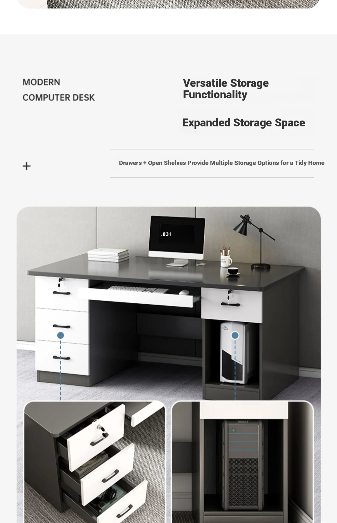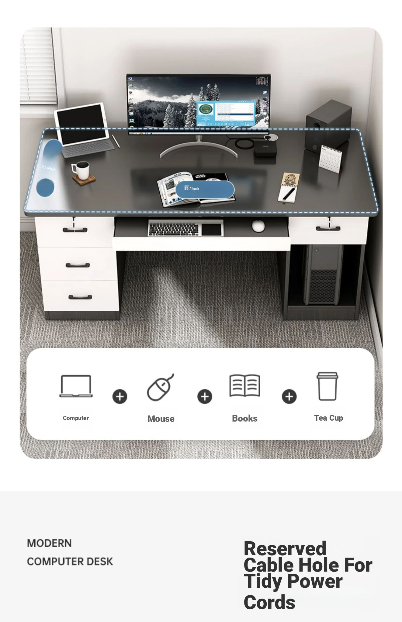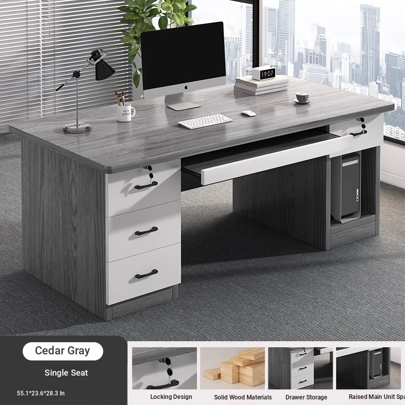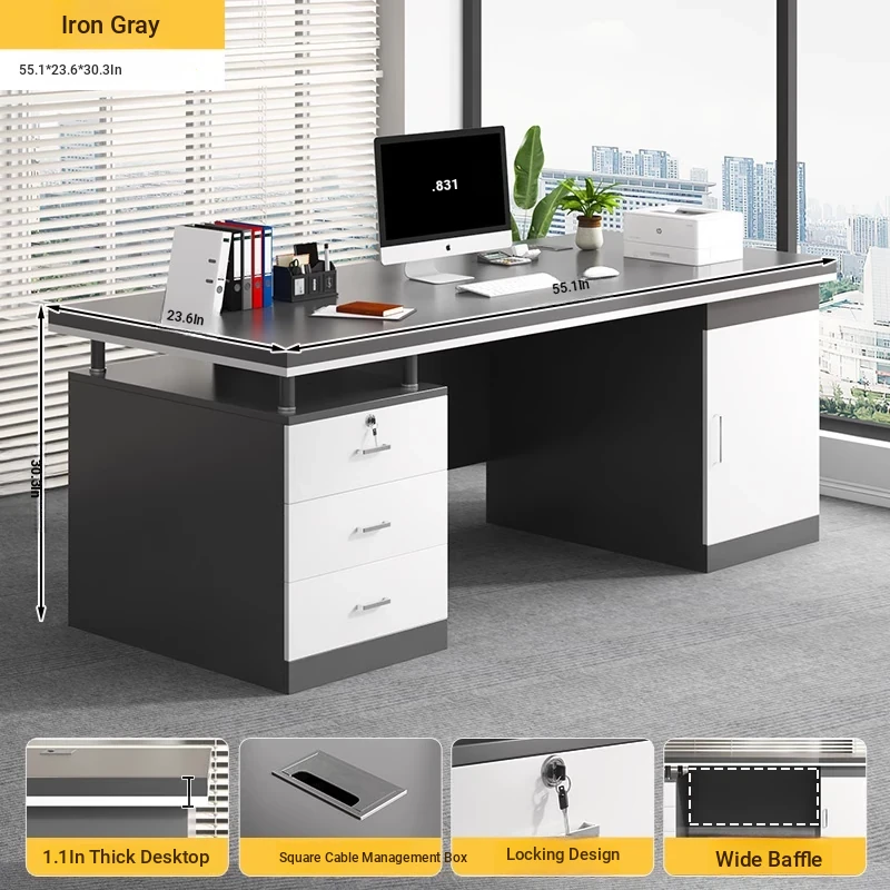 [Double -1.10in Desktop] Classy Grey 55.12in | Three Drawers and One Cabinet