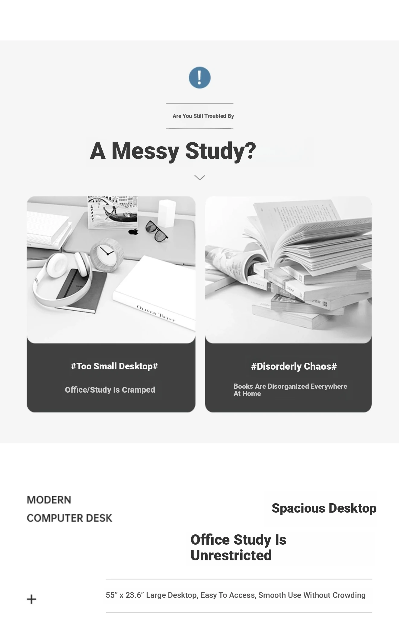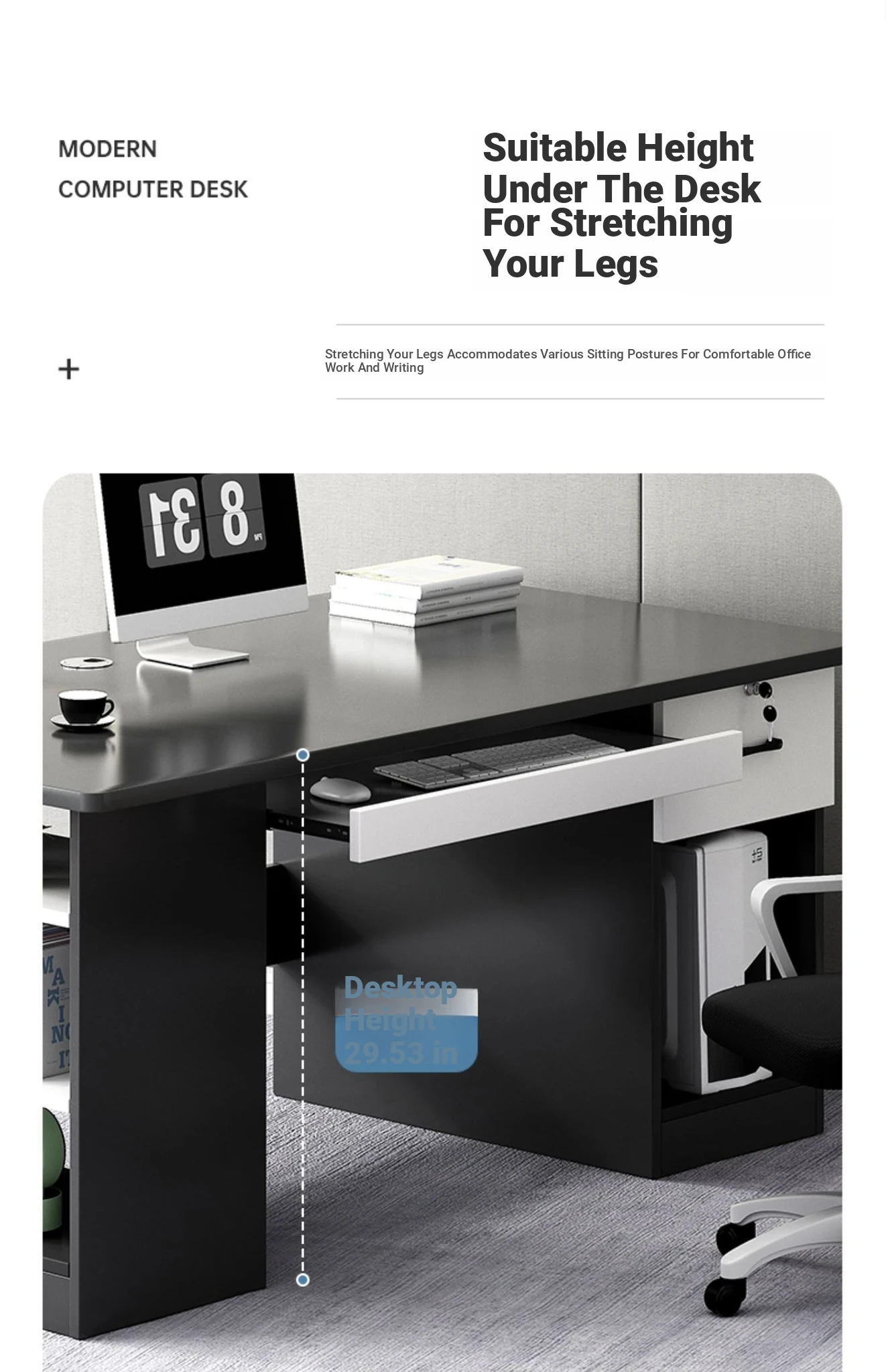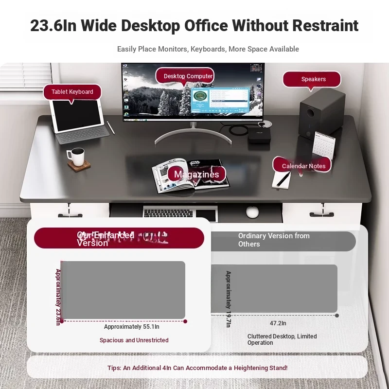 [Double -1.10in Desktop] Classy Grey 55.12in | Three Drawers and One Cabinet
