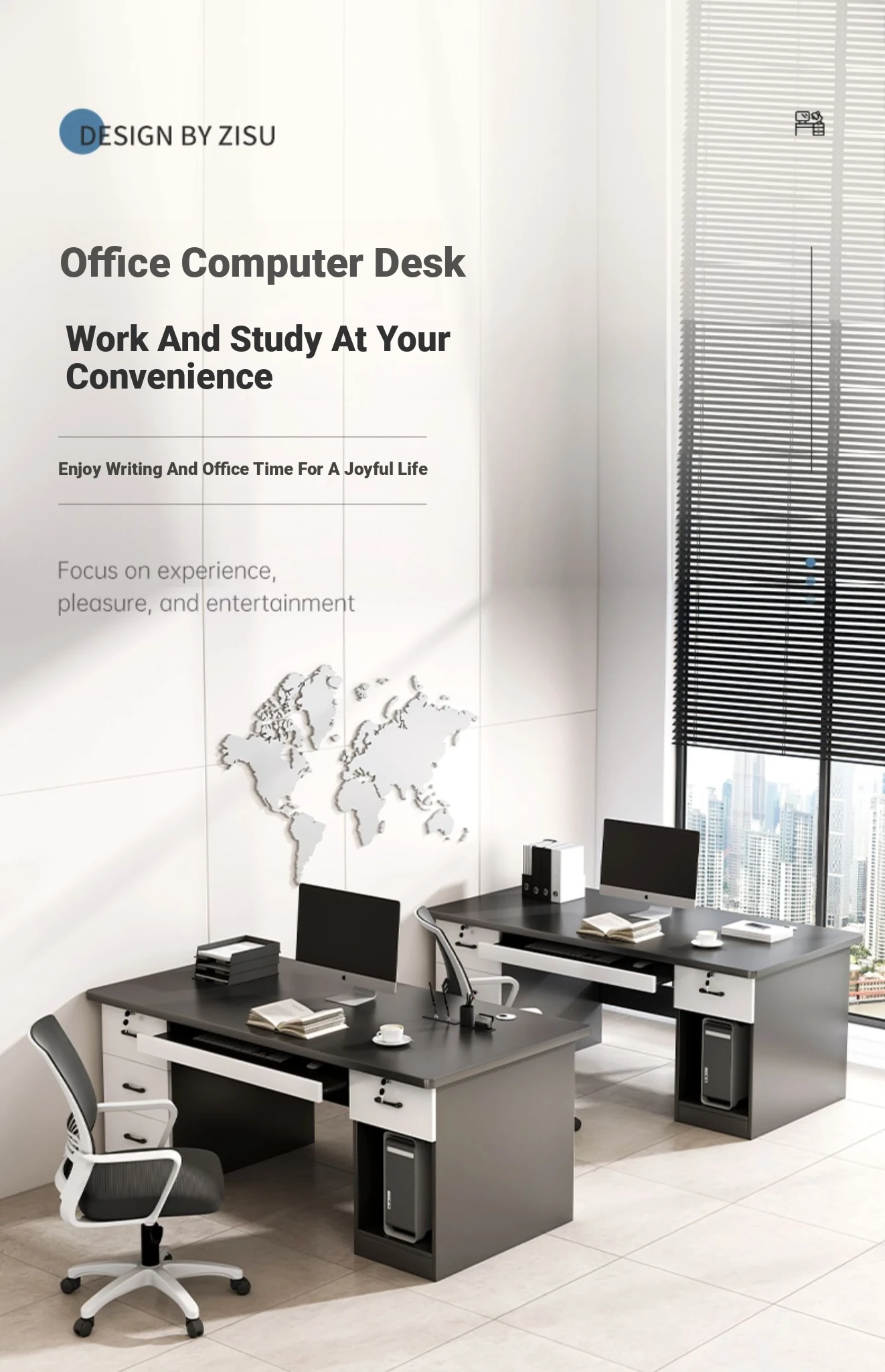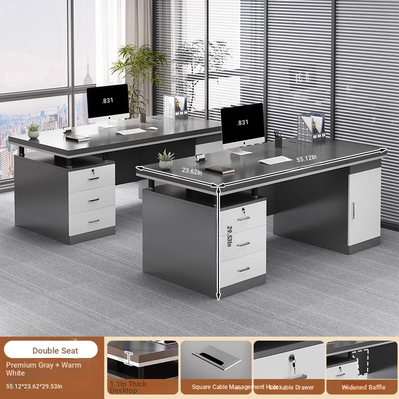 Modern Minimalist Office Desk and Chair Set for Boss - Dual Workstation with Desktop Computer Desk and Study Table for Employees