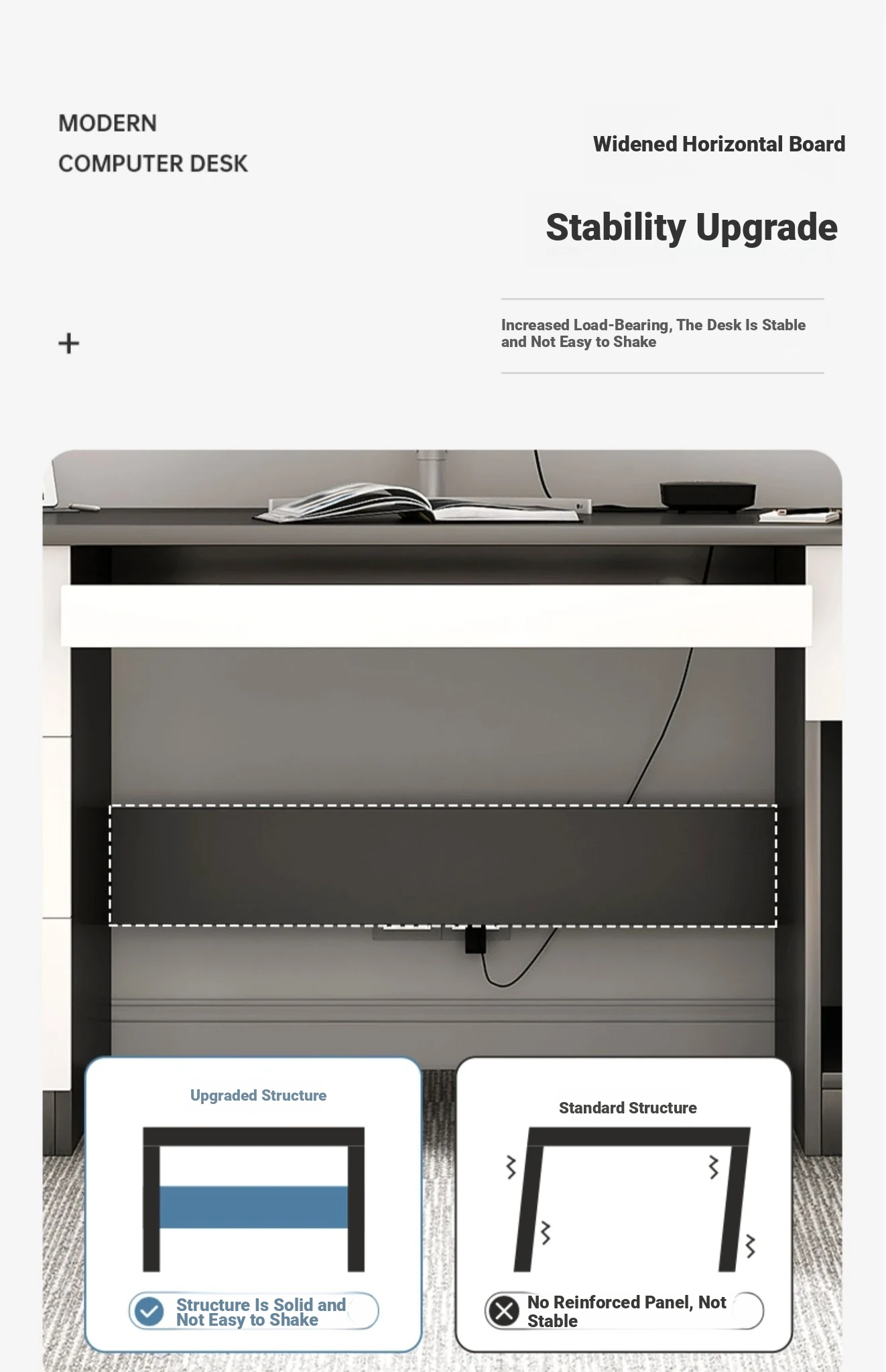 [Thickened paragraph✅1.10in desktop] Classy gray 62.99in*27.56in | Three draw one cabinet (note: The style is high density composite board)