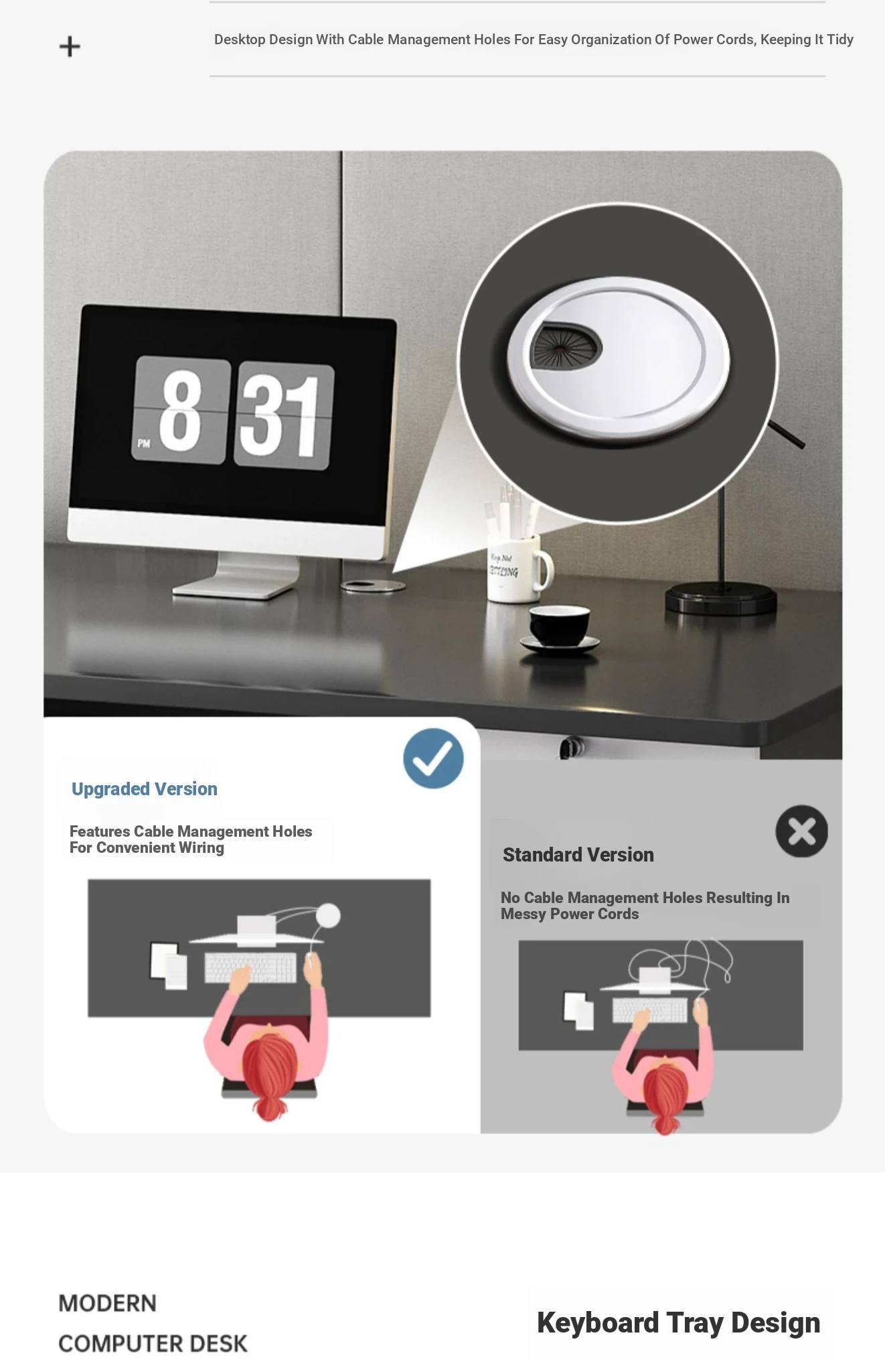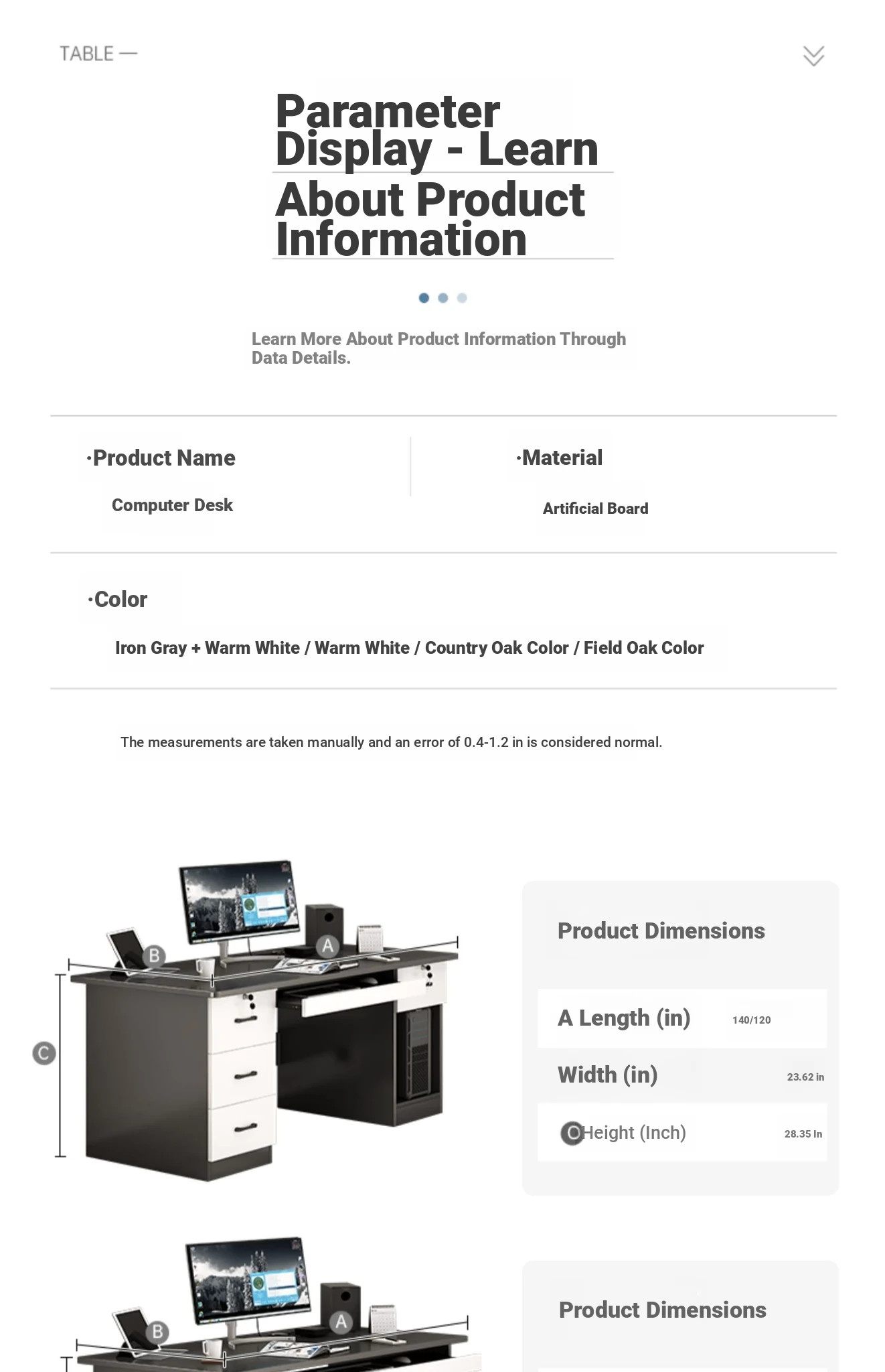 [Thickened paragraph✅1.10in desktop] Classy gray 55.12in | Three draw one cabinet (note: The style is high density composite board)