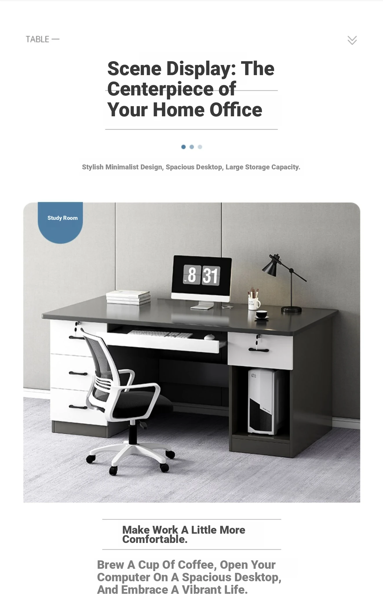 [Double position -1.10in desktop] Classy gray 47.24in | Three draw one cabinet