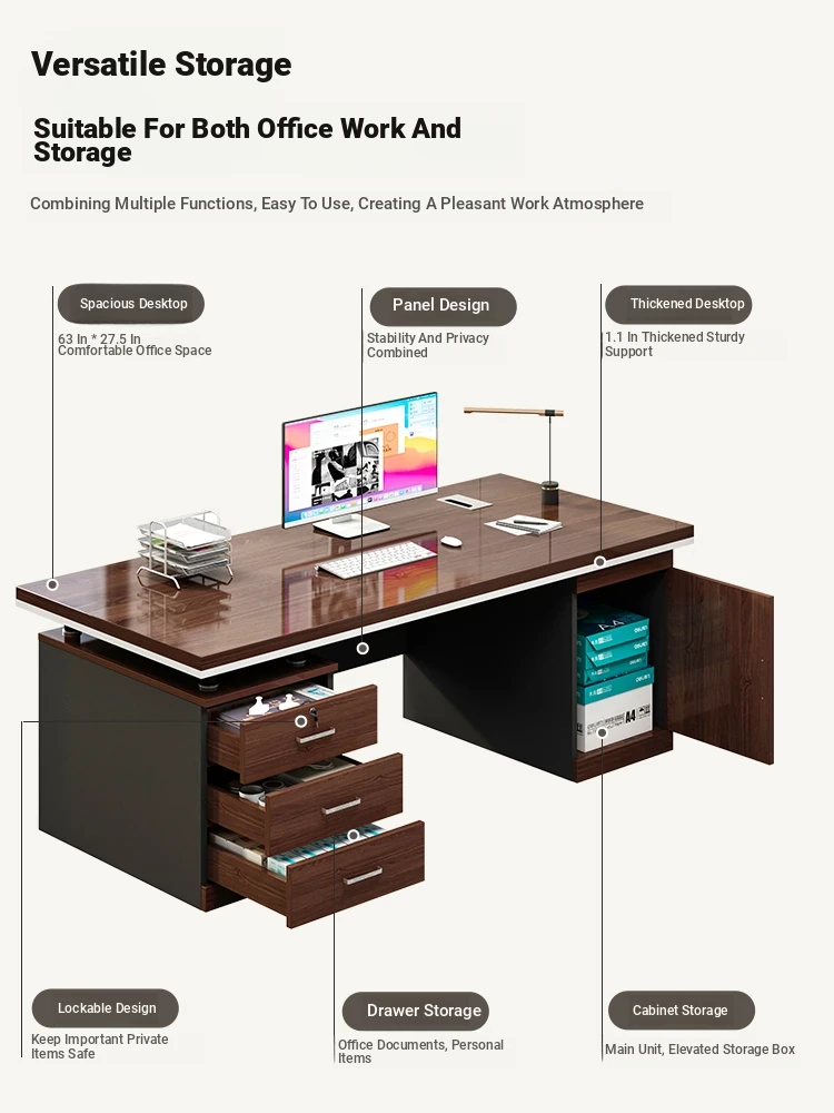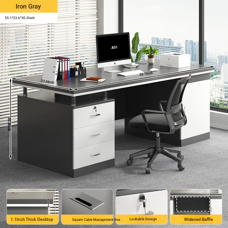 Modern Minimalist Office Desk Set - Stylish Employee Workstation with Desk and Chair for Individual Use, Perfect for Bosses and Professionals. Ideal for Enhancing Productivity in Any Office Environment.