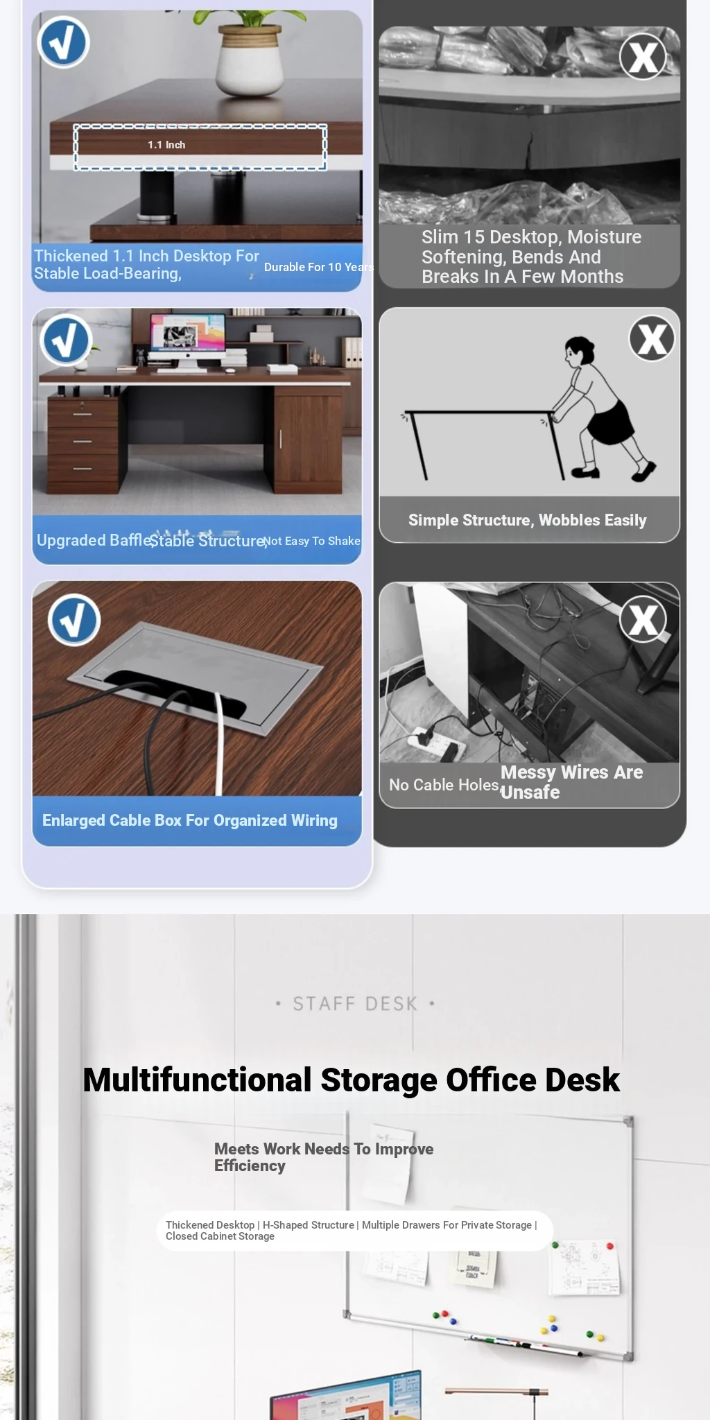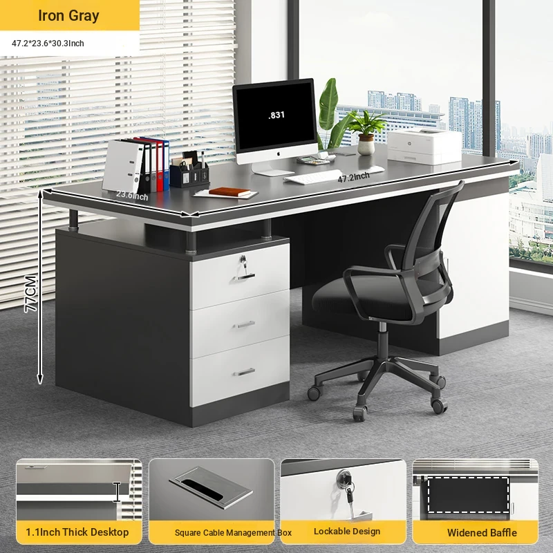 Six layers of reinforced thickened 28 desktop⭐[Single Table and Chair] 120*60 + Three Draws One Cabinet