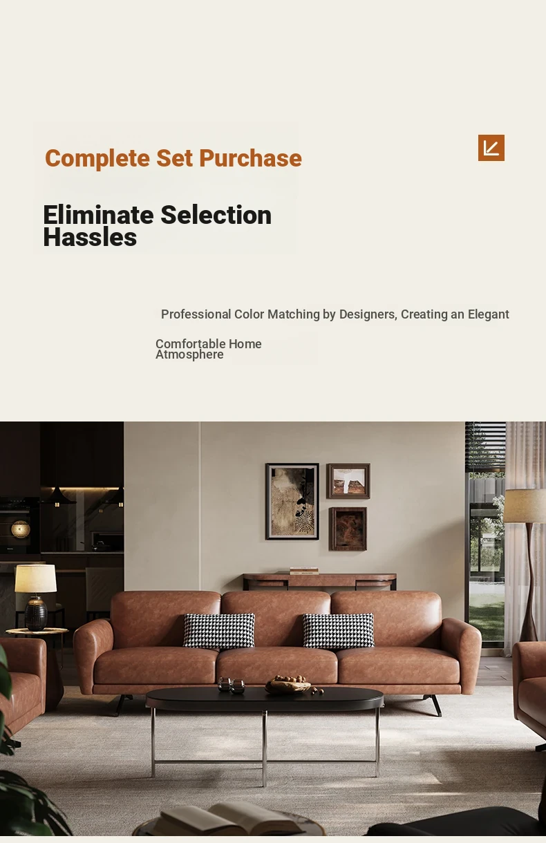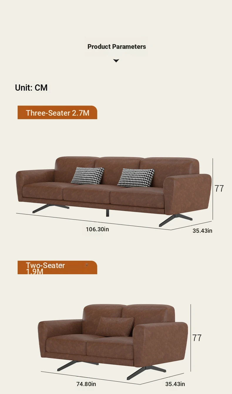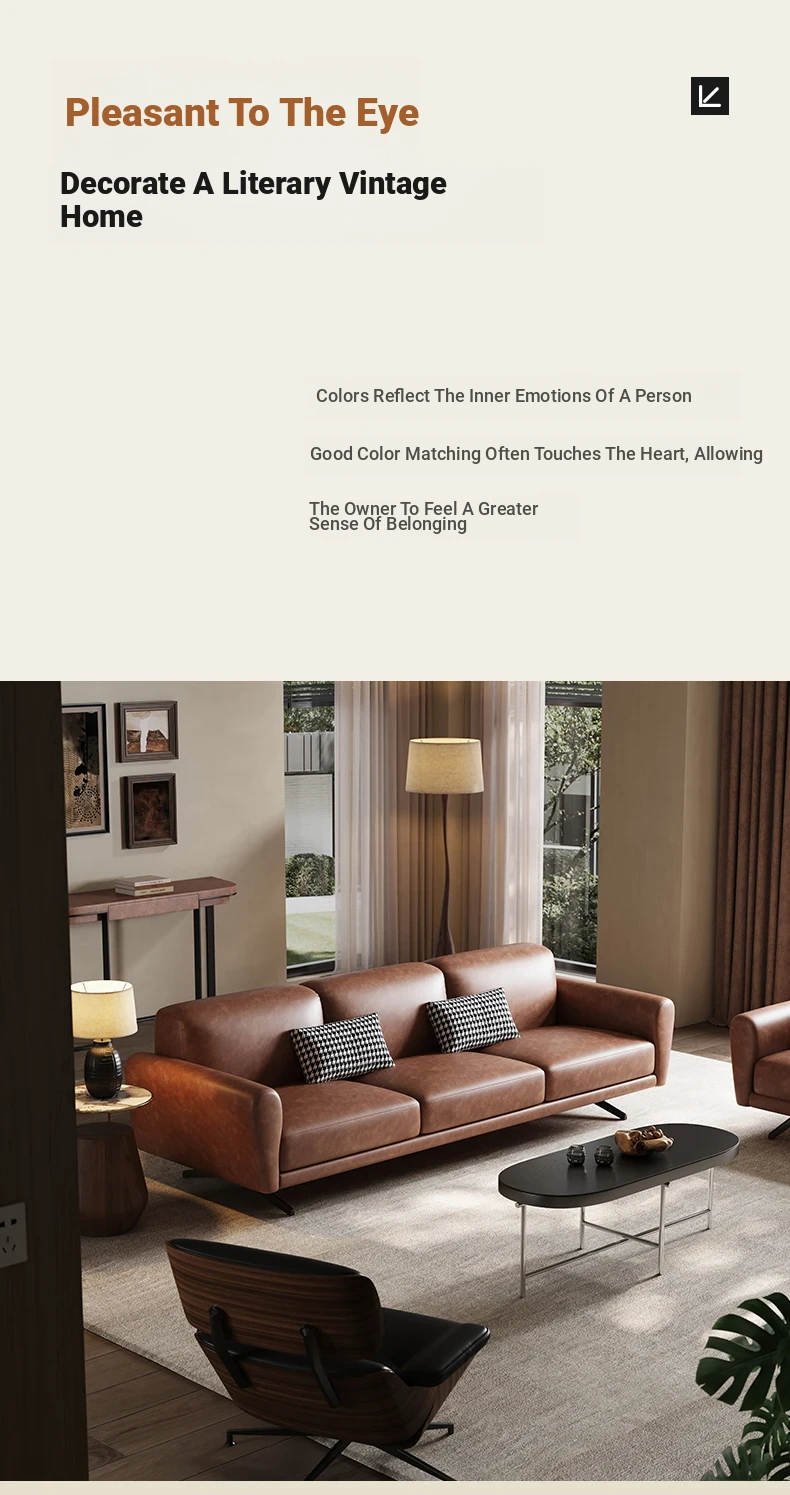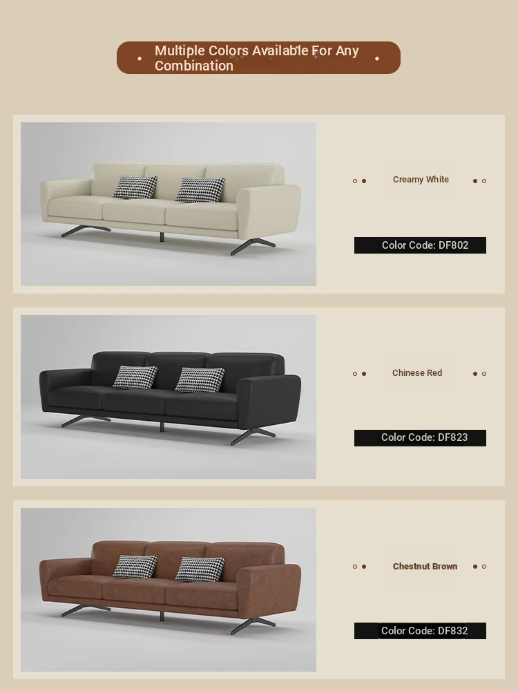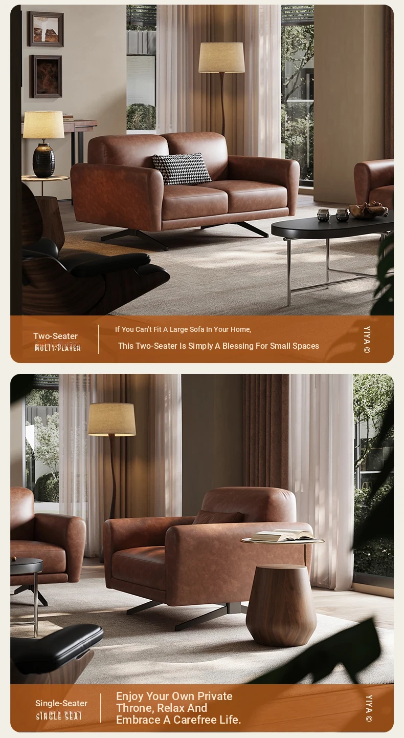 Modern Minimalist Retro Genuine Leather Sofa for Small Spaces - Three-Seat Top Grain Cowhide Sofa with Straight Lines, Italian Design for Elegant Living Room Décor.