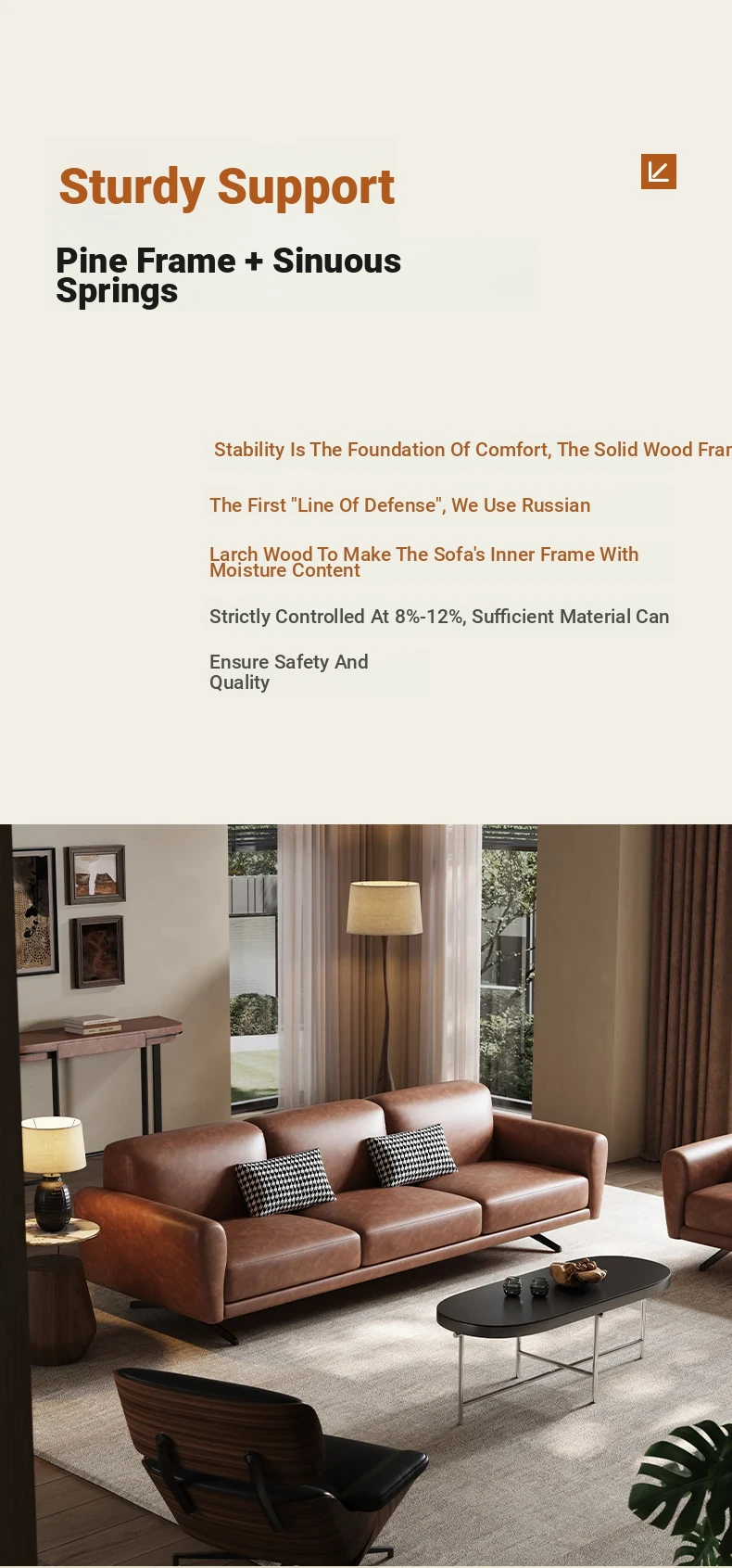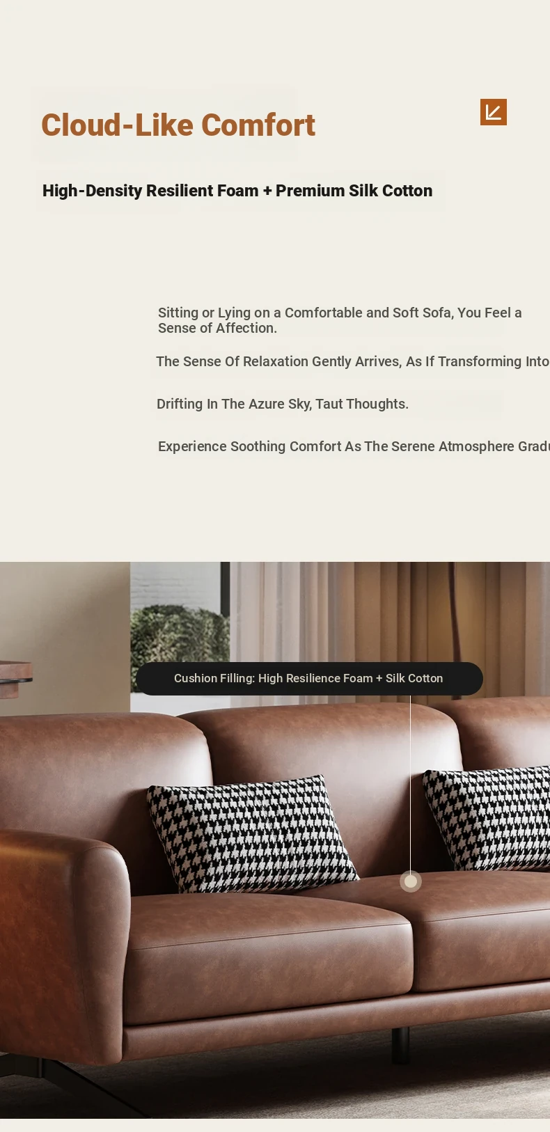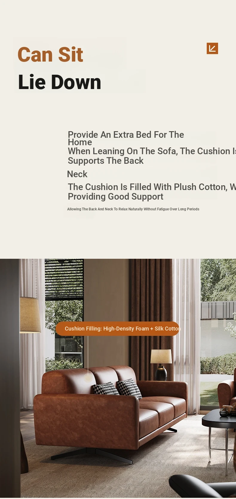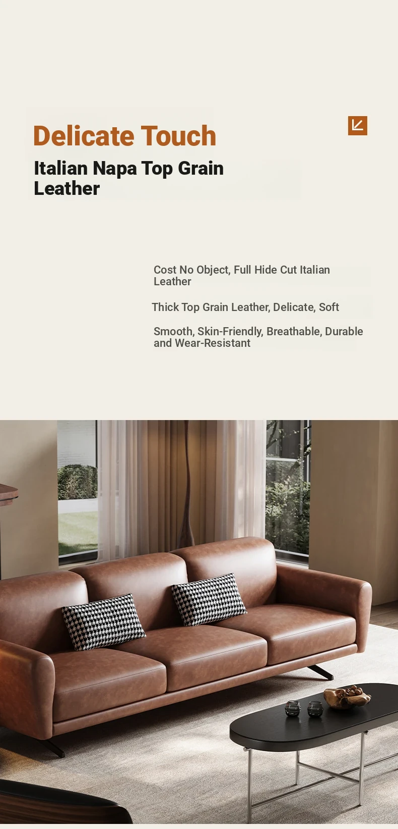 Modern Minimalist Retro Genuine Leather Sofa for Small Spaces - Three-Seat Top Grain Cowhide Sofa with Straight Lines, Italian Design for Elegant Living Room Décor.