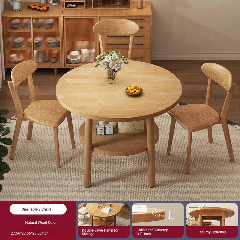 [A table of 4 chairs★Round table] Pastoral oak color 31.50in*31.50in*29.53in