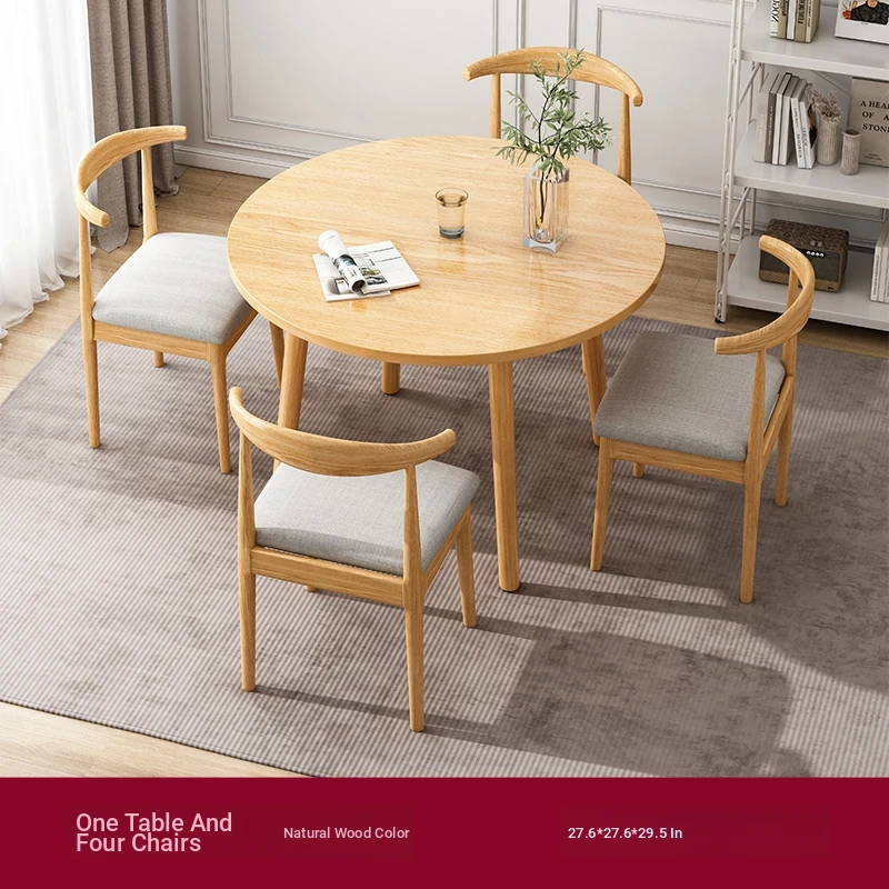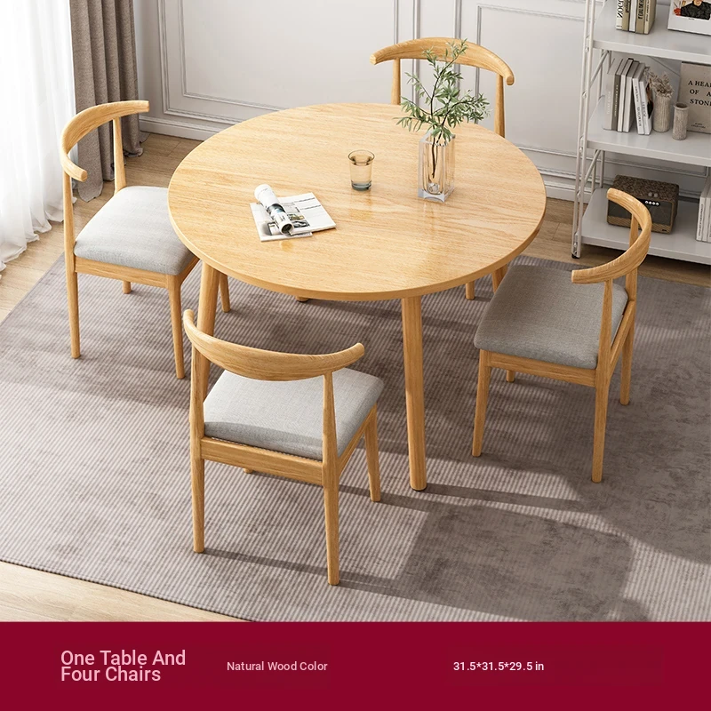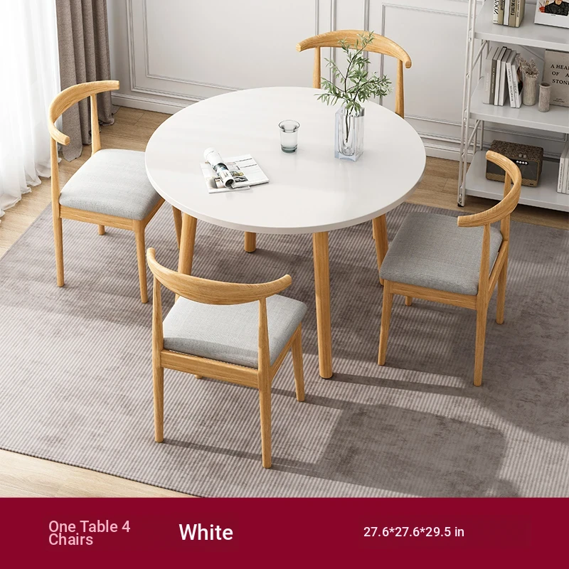 [A table of 4 chairs★Round table: Warm White 31.50in*31.50in*29.53in
