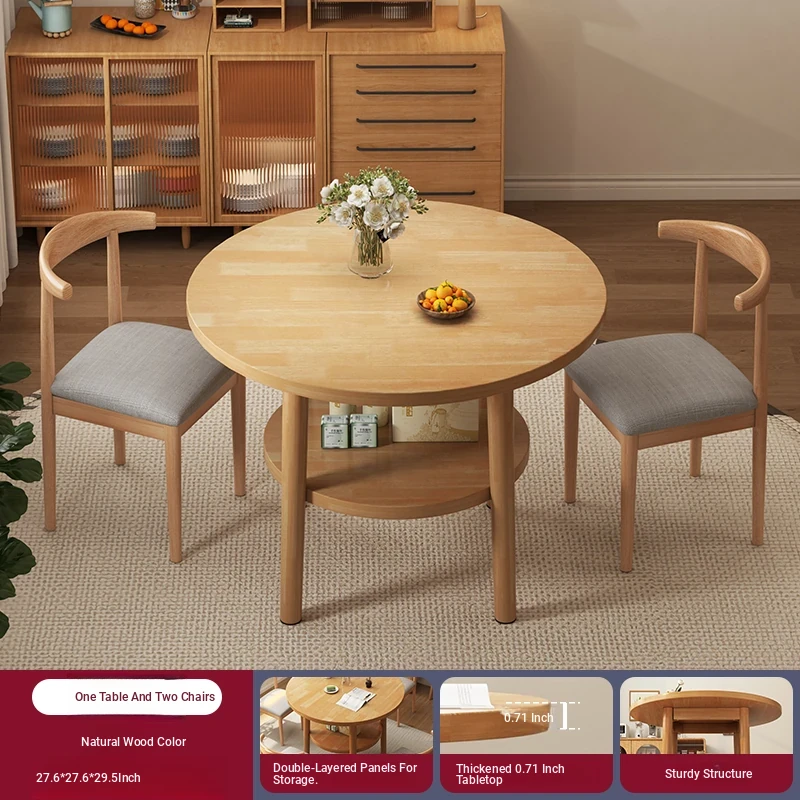 [One table and two chairs★Round table] Pastoral oak color 31.50in*31.50in*29.53in