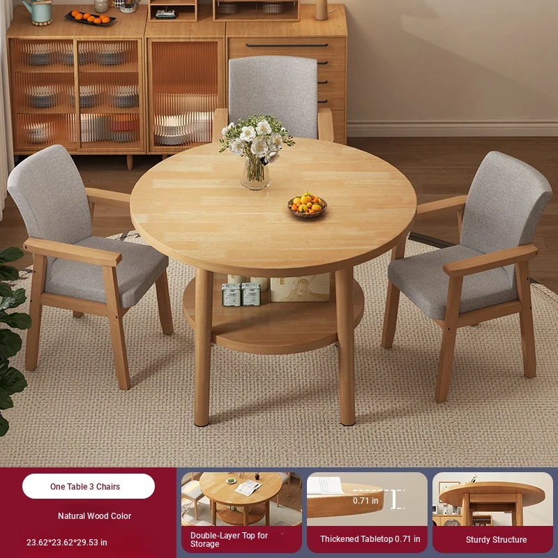 [One table and three chairs★Round table] Pastoral oak color 31.50in*31.50in*29.53in