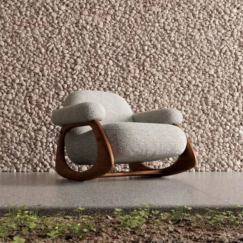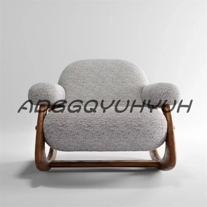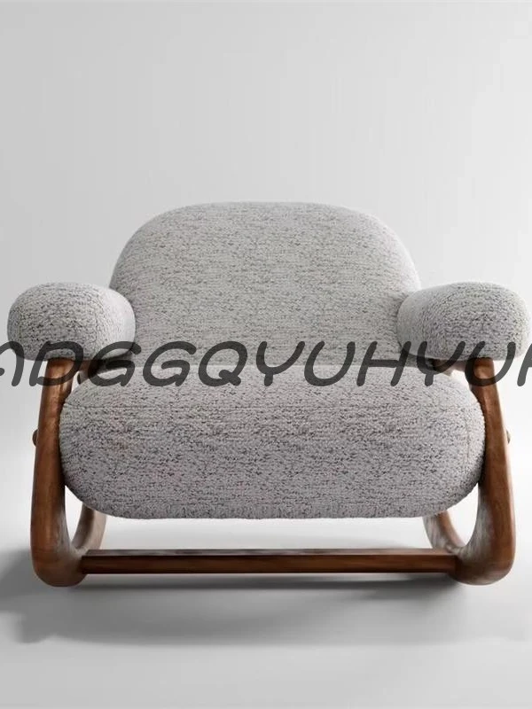 Modern Minimalist Solid Wood Sofa Chair for Living Room - Designer Soft Furnishing, Ideal for Showrooms and Lounges, Creamy Aesthetic Reception Armchair