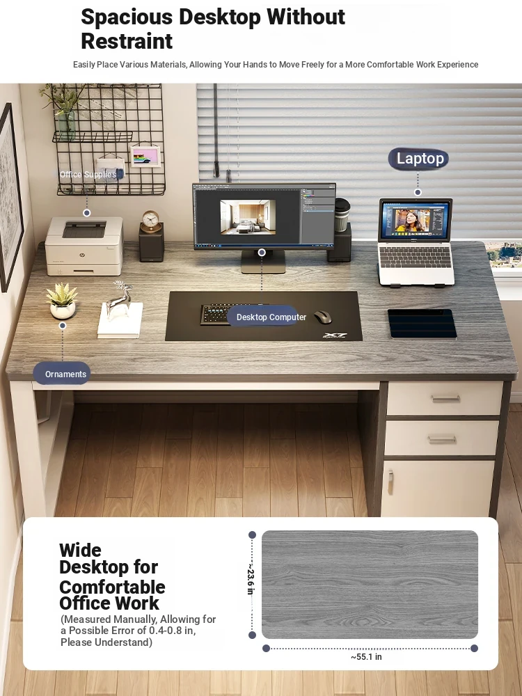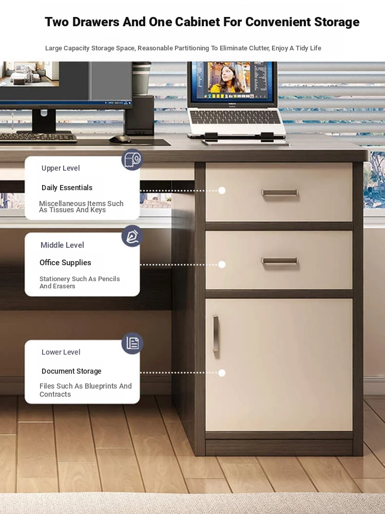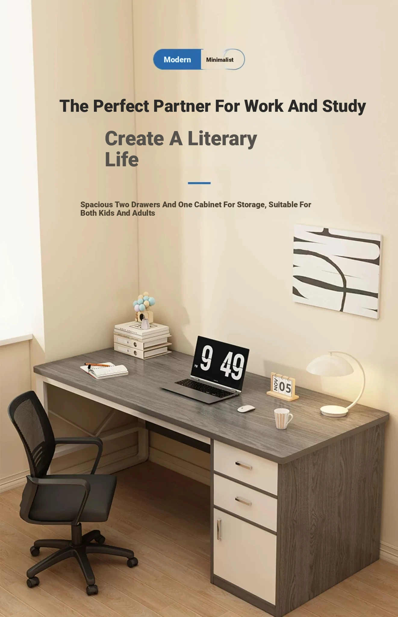 Modern Minimalist Study Desk with Drawers - Ideal for Students and Home Use, Perfect for Writing and Working on Computers, Stylish and Functional Office Table