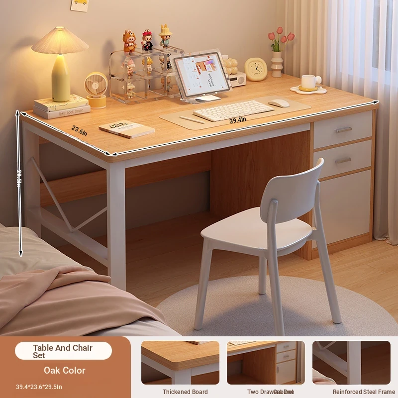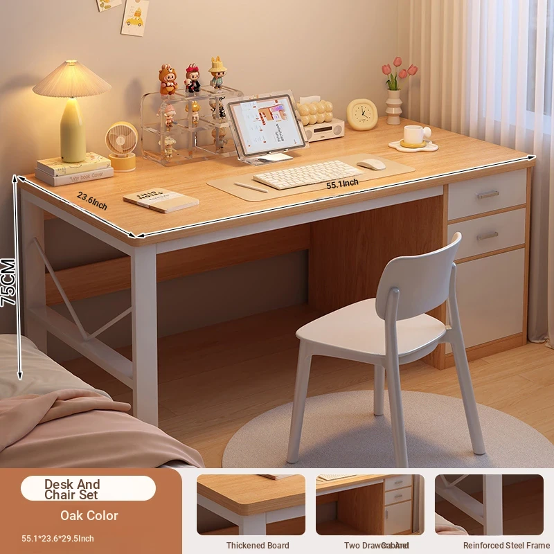 [Table and Chair combination] Oak color 55.12in (two draw a cabinet)