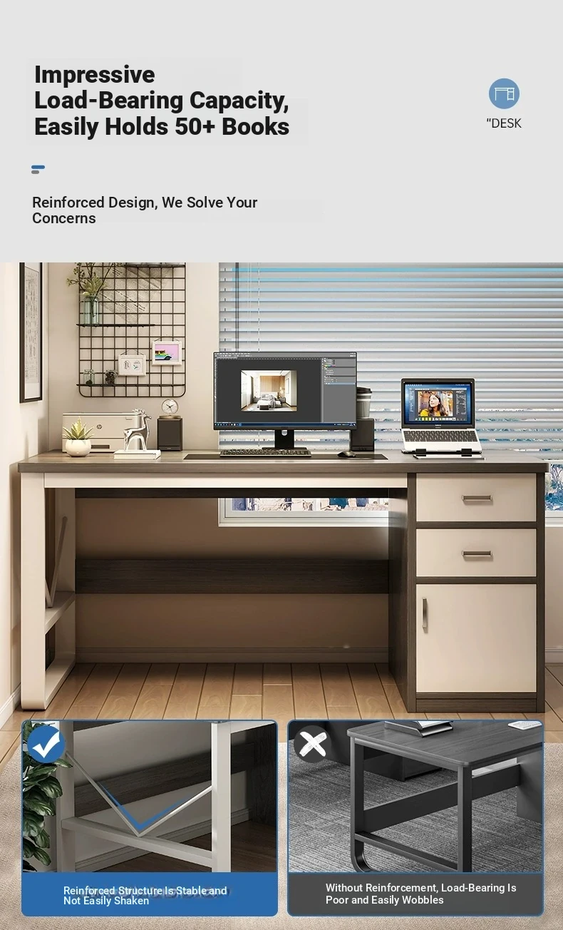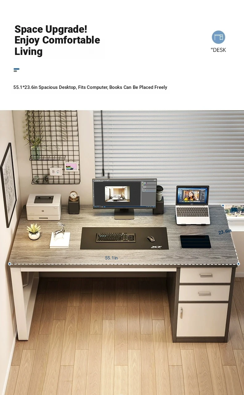 Modern Rectangular Computer Desk for Home and Bedroom - Minimalist Writing and Study Table with Drawers, Perfect for Office Use