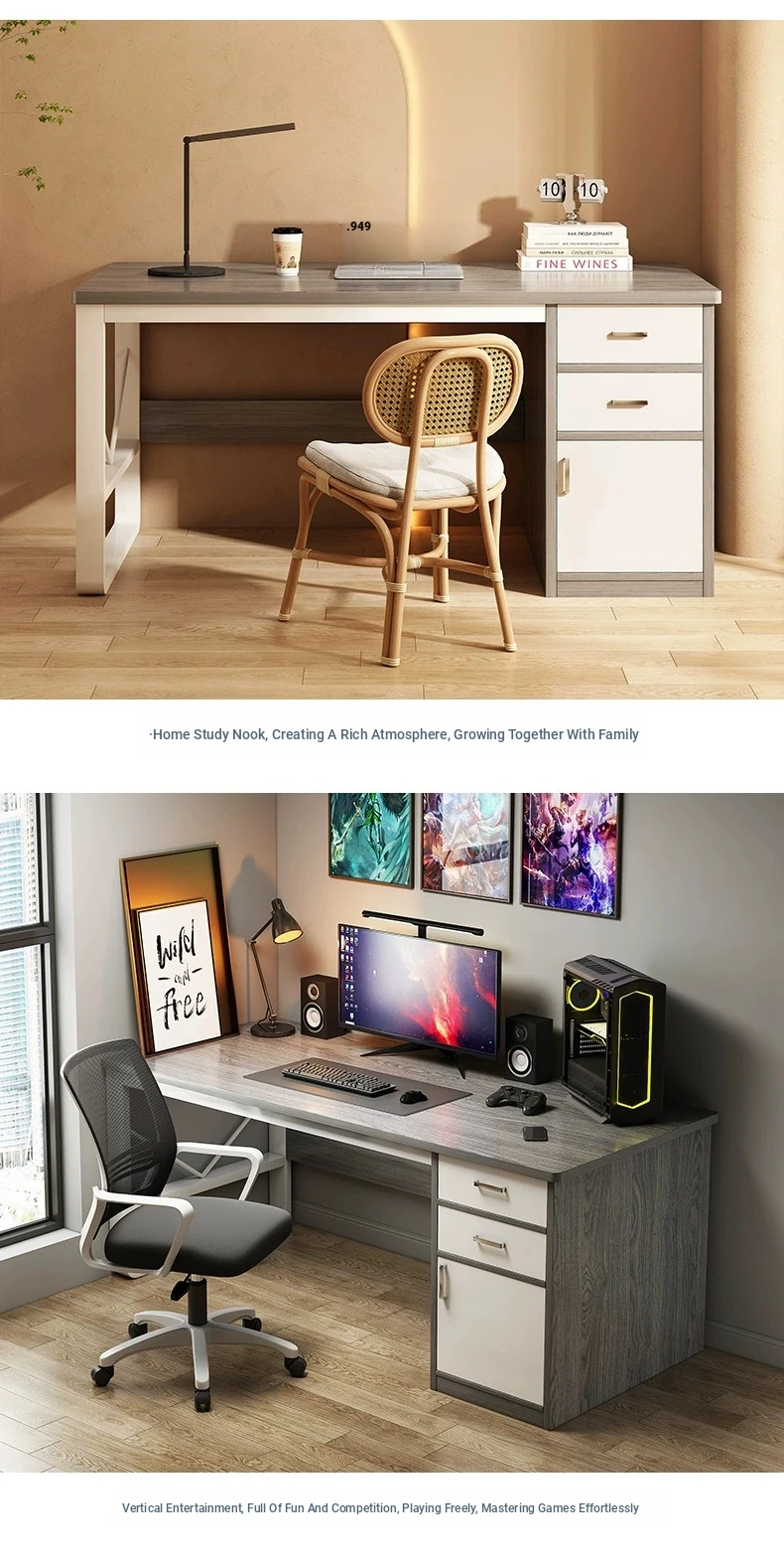 [Table and Chair Combination] Morandi Grey 47.24in (Two Draws and One Cabinet)