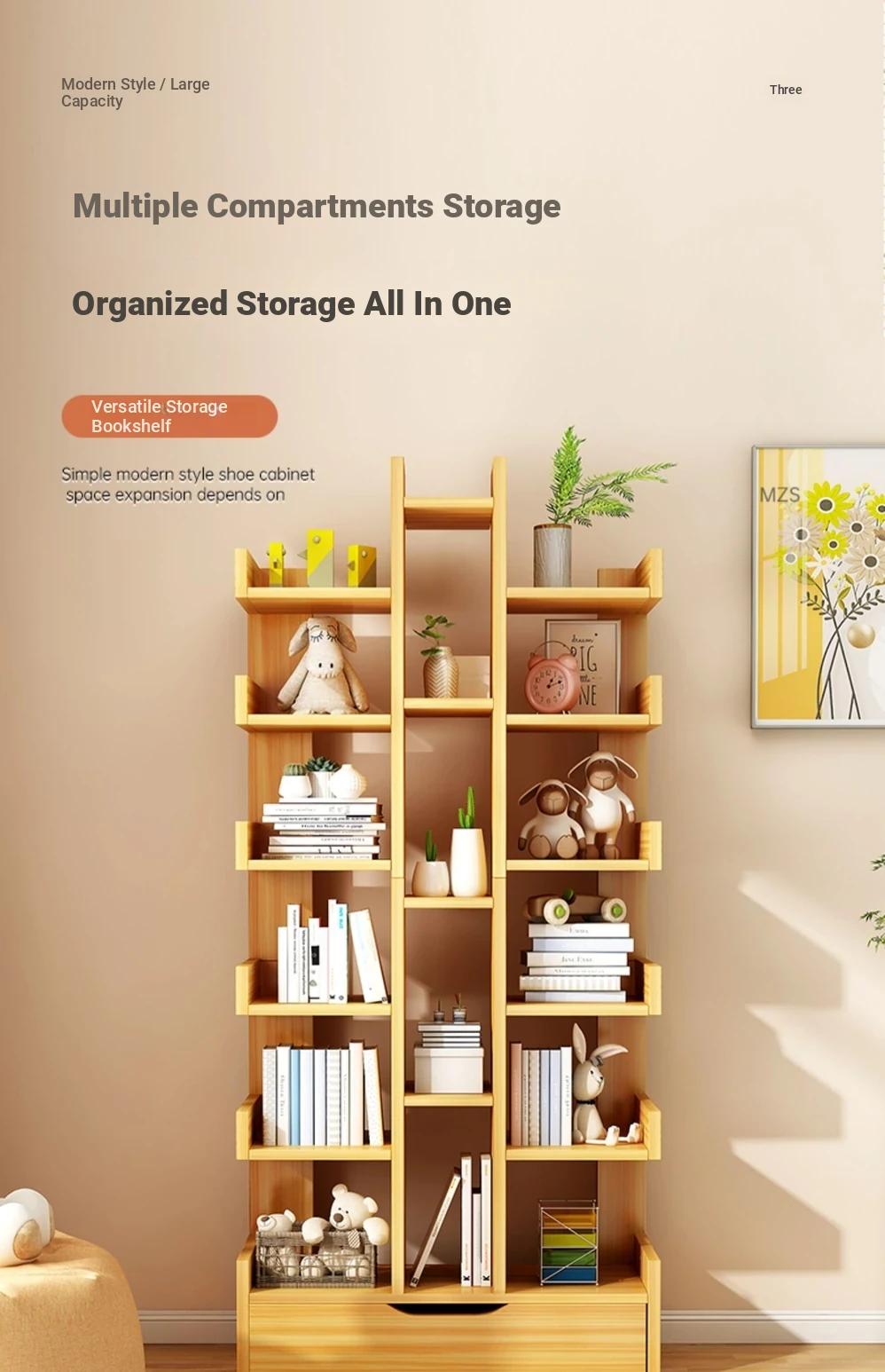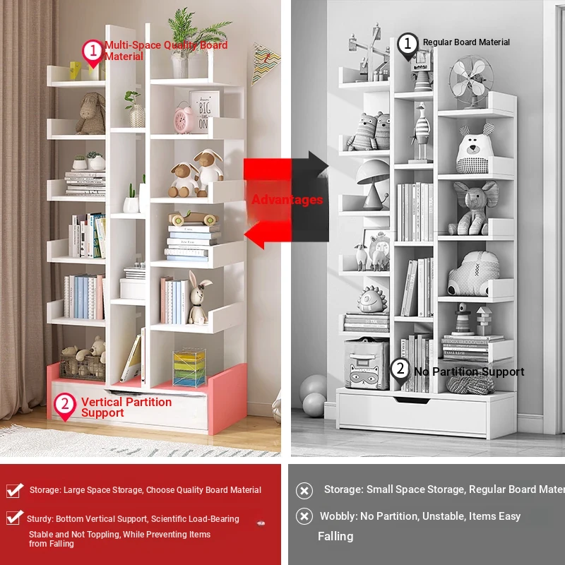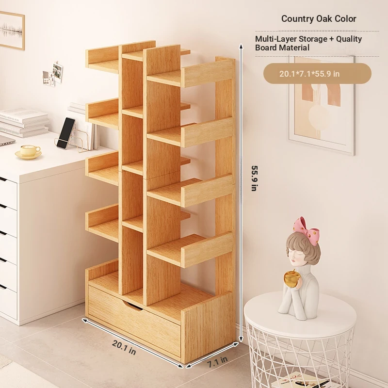 Modern Tree-Shaped Freestanding Bookshelf and Storage Rack - Multi-Layer Organizer for Living Room, Wall-Mounted Design, Ideal Small Bookcase for Students and Home Decor
