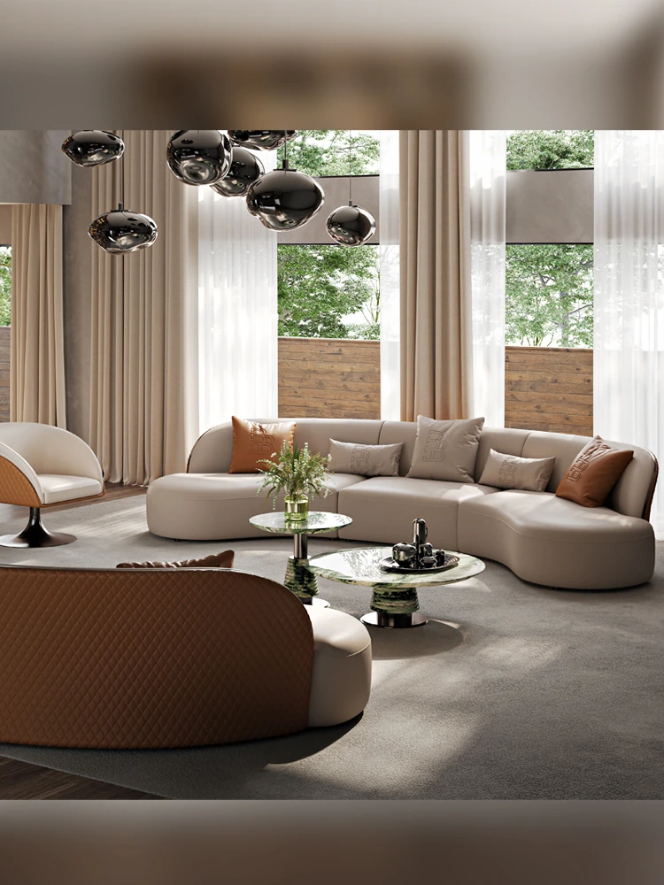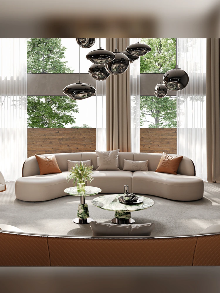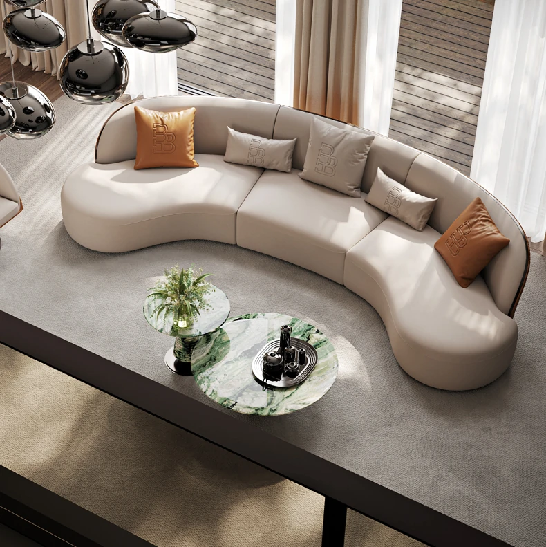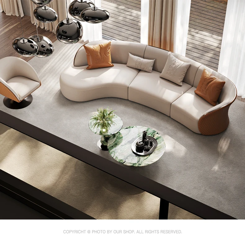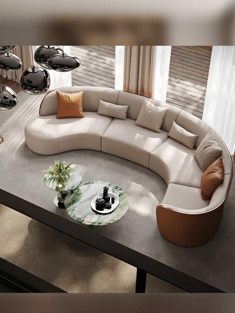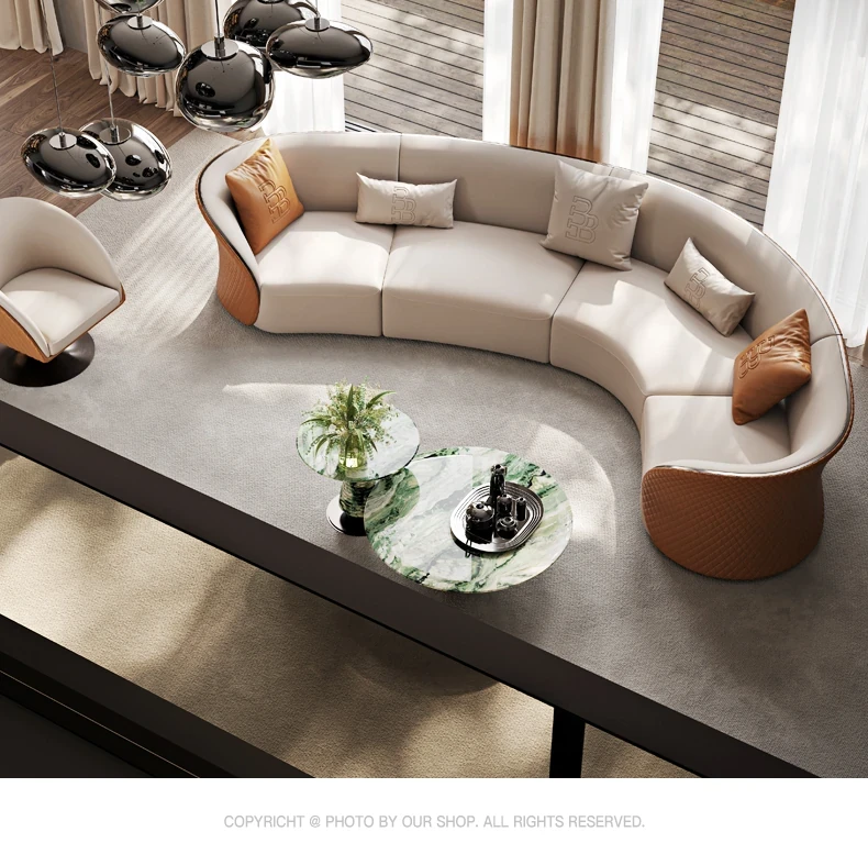 Ms Original/Cavaliere Italian Designer Premium Large Luxury Curved Leather Sofa for High-End Living Spaces