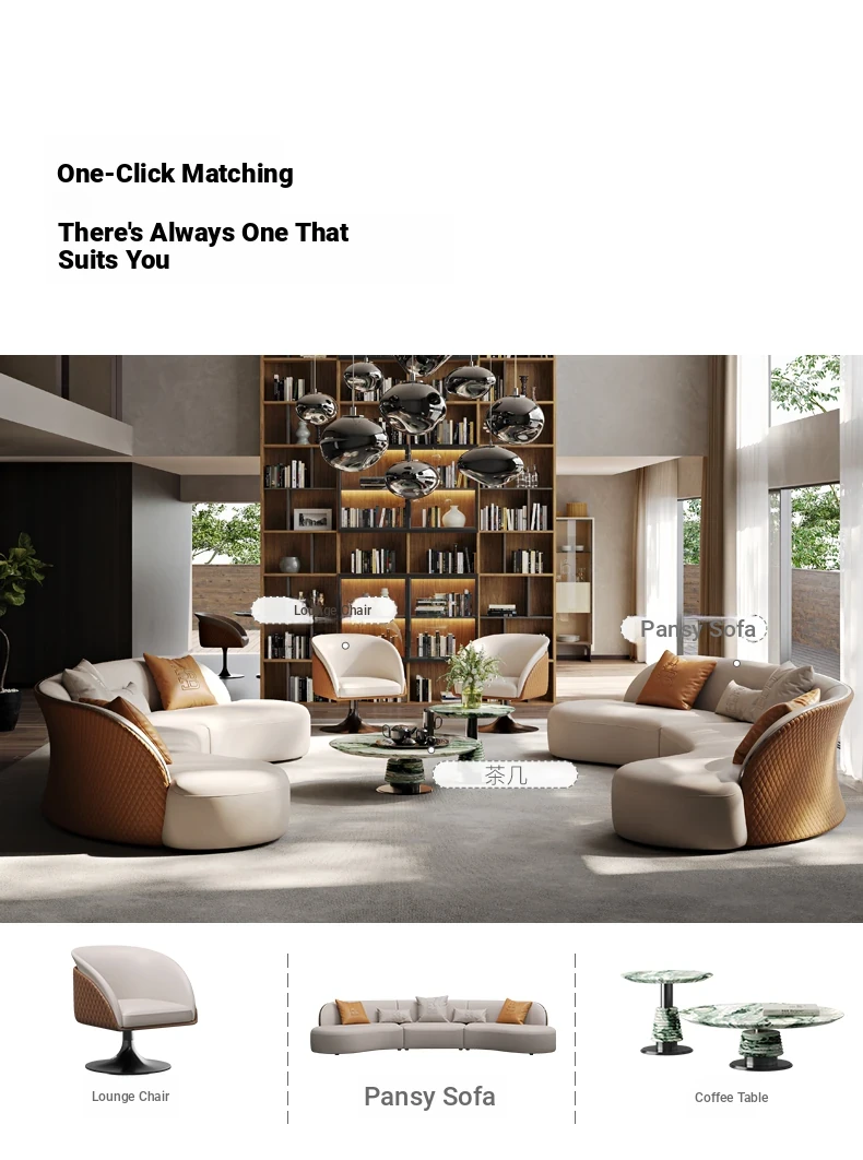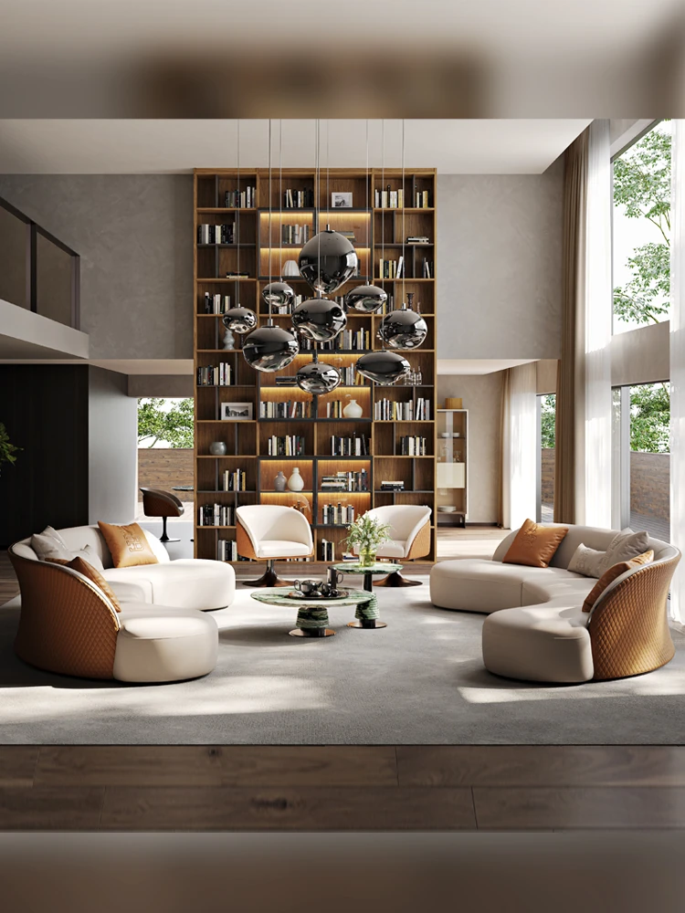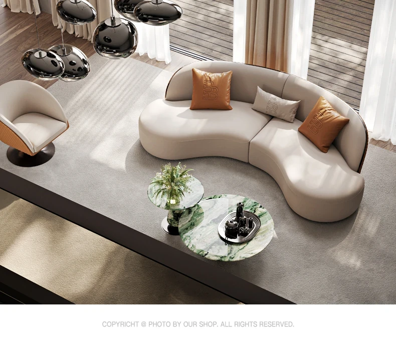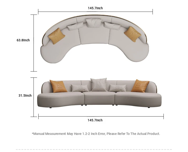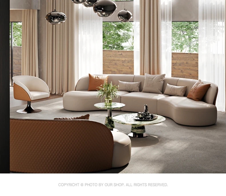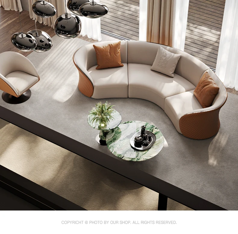 Ms Original/Cavaliere Italian Designer Premium Large Luxury Curved Leather Sofa for High-End Living Spaces