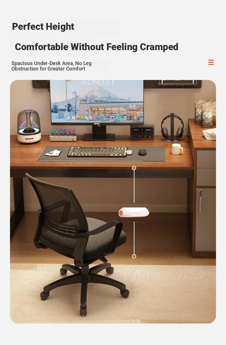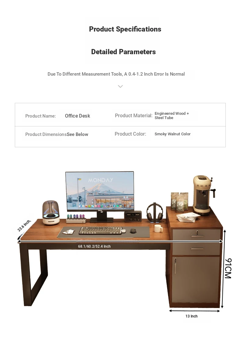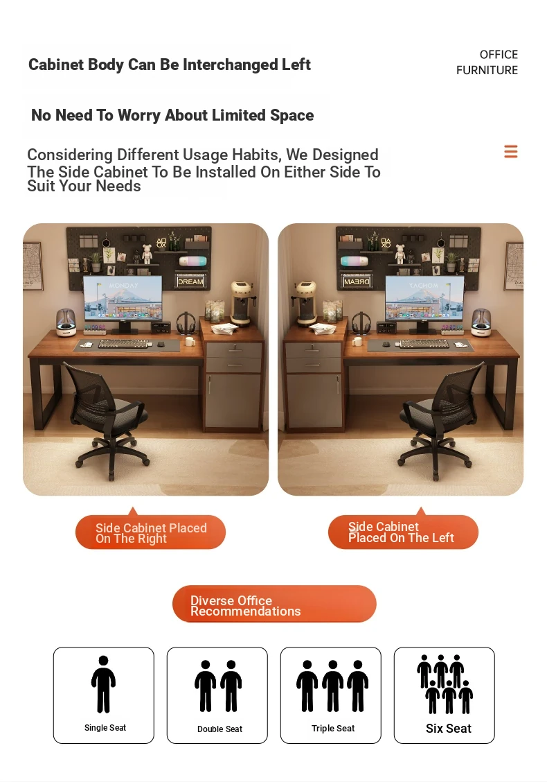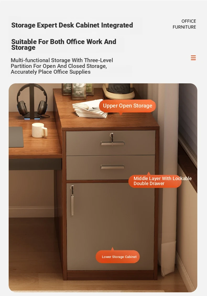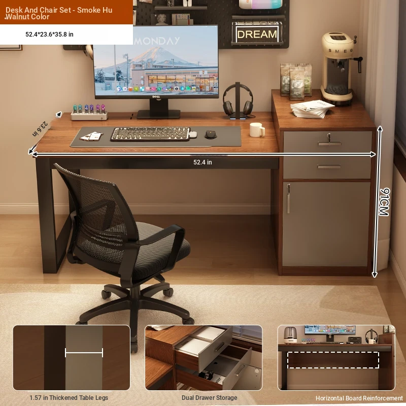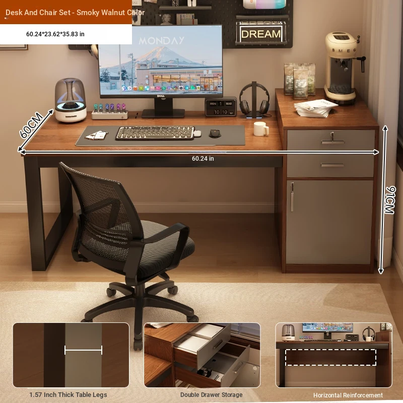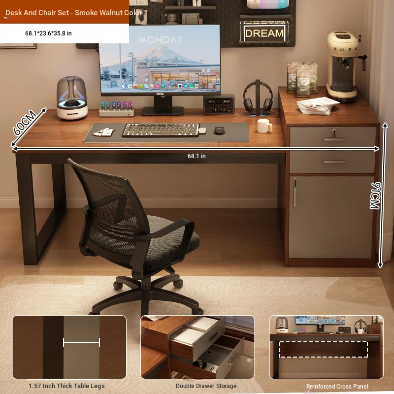 [Liftable Electric Competition Chair Combination] Walnut Color 60.24in*23.62in (Two Draw One Cabinet Super Capacity)
